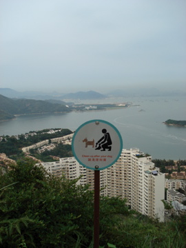 I headed up the trail to the look-out point, but unfortunately it was a very cloudy day and the view of the rest of Hong Kong was a bit dark and gloomy. But it’s great weather for walking because it’s not blazing sun. The nickname for Discovery Bay — DB — is ‘Dogs and Babies’, and there sure were a lot of people hiking around with their kids and pooches. But they are very careful about cleaning up their dog-doo! Thank goodness.