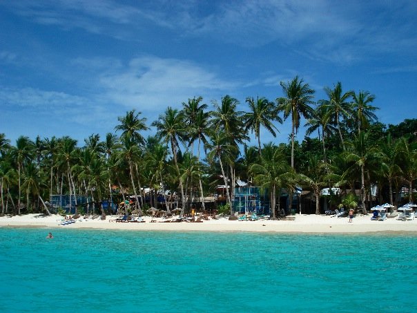 Boracay island is a beautiful tiny dot in the Aklan province of the Philippines, and a big tourist attraction in Asia. Because we got a cheapo package from the travel agent, we had a long and painful trip. We flew Hong Kong to Manila, Manila to Kalibo, took a bus from Kalibo to Caticlan, and a rickety old boat across the channel from Caticlan to Boracay. We arrived in the evening, and even as darkness was falling, I could see how amazingly clear the water was. ‘Wow’ I thought, ‘if it’s this beautiful in the dark, can you imagine what it is like in the sunlight?’