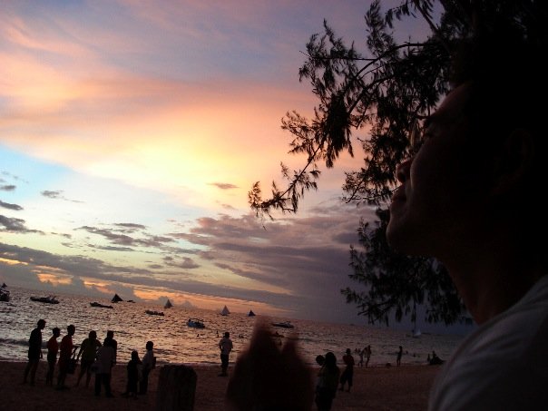 When we got back onto the boat and asked to be taken to the next snorkel spot, the Totos told us that to go to the snorkel caves we would have to pay another 200 pesos, which we had not brought with us and which Archie had not told us about. We asked if they knew any other spot nearby, they suggested simply calling it quits and taking us back, even though we had only been out for half of the trip. After our protests they took us to one or two other spots but they didn’t compare. We decided to call it a day and head back to the island. I had heard that Boracay people don’t take work too seriously… I guess I had my proof. But anyways, it was time for a San Mig at sunset on the beach.