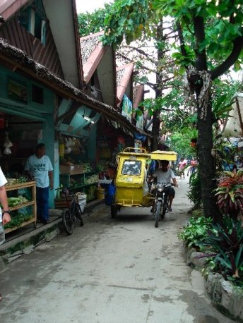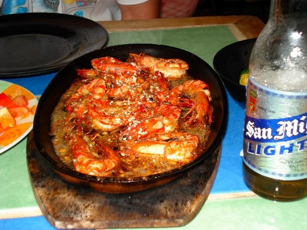 Filipino food proved to be a lot better than its reputation as the Worst Food in Asia. Shrimp paste is a popular flavoring and its salty tang is wonderful. We particularly enjoyed bangus sisig — a sizzling plate of flaked fish with drizzled lime. Kang Kong green veggies with garlic and shrimp in coconut milk was fabulous. And eating out is amazingly cheap: an all-you-can-eat dinner buffet on the beach costs roughly $4 US, a beer is a little over $1 US, and a cocktail about $2 US. As you can imagine, we ate and drank, a LOT.