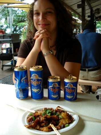 After slinging back some overpriced drinks at Raffles we walked to Boat Quay, a cute area in downtown Singapore along the river. The restaurants were so competitive that one place lured us in by offering us each two free beers, and of course we couldn’t say no to that. We filled our bellies with nasi goreng (fried rice), coconut chicken, satay, and all kinds of yumminess, and the drinks flowed all night when we went to another nearby bar.