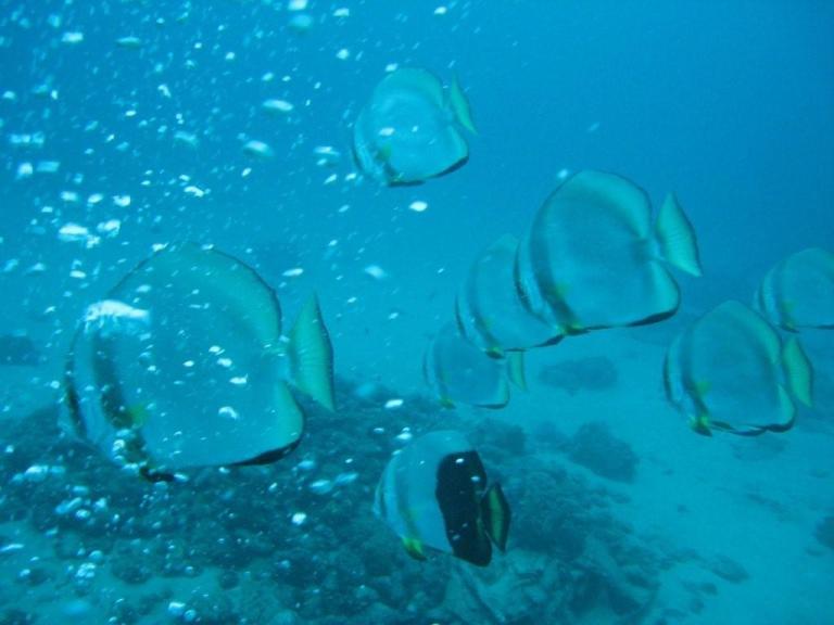 Our last dive that day was at a spot called Escasion (spelling?). We dropped off the boat and descended about 20 metres where I landed right next to a beautiful big turtle, who was munching on some seaweed growing on a rock. It didn’t seem the least bit disturbed by our presence. We also came across a number of lovely dragon fish, which always reminded me of a Carnival costume.