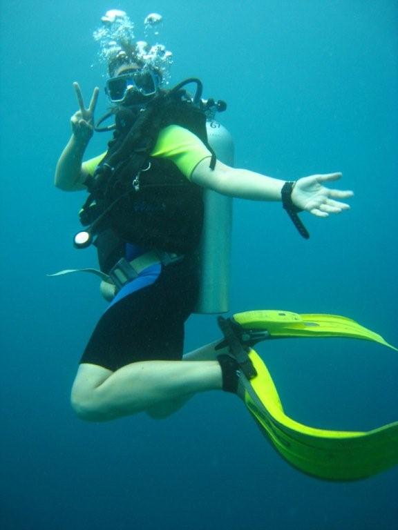 There was a group of Japanese tourists who were more advanced divers, and a couple from South Africa who turned out to also live in Hong Kong who were beginners, like me. We slipped on our wetsuits, got on the weight belts, and XC briefed us on our first dive.