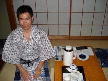 But not for long. A middle aged mother and her teenage daughter came inside, and through the steam saw me. I heard the mother whisper, ‘Gaikokujin desu!‘, which means, ‘Holy %$&#, it’s a foreigner!’ I tried not to laugh. I turned politely and said sweetly with a little bow of my head, ‘Konbanwa’, which means ‘good evening’. They slowly eased their way into the hot water and cautiously began to make some small talk with me. This was a great chance for me to pratice Japanese, and the weekly Japanese class I’ve been going to recently really came in handy. They were very curious about where I was from and what we were doing in Wakayama. And above all, they were most impressed that I was with a Japanese man — something which is a bit of a rarity in Japan. That night at dinner when we went down to the dining room, instead of being shy or reluctant, instead they gave us a big smile and said hello. I guess as the lone foreigner in a small town, a little Japanese and a big smile goes a long, long way.