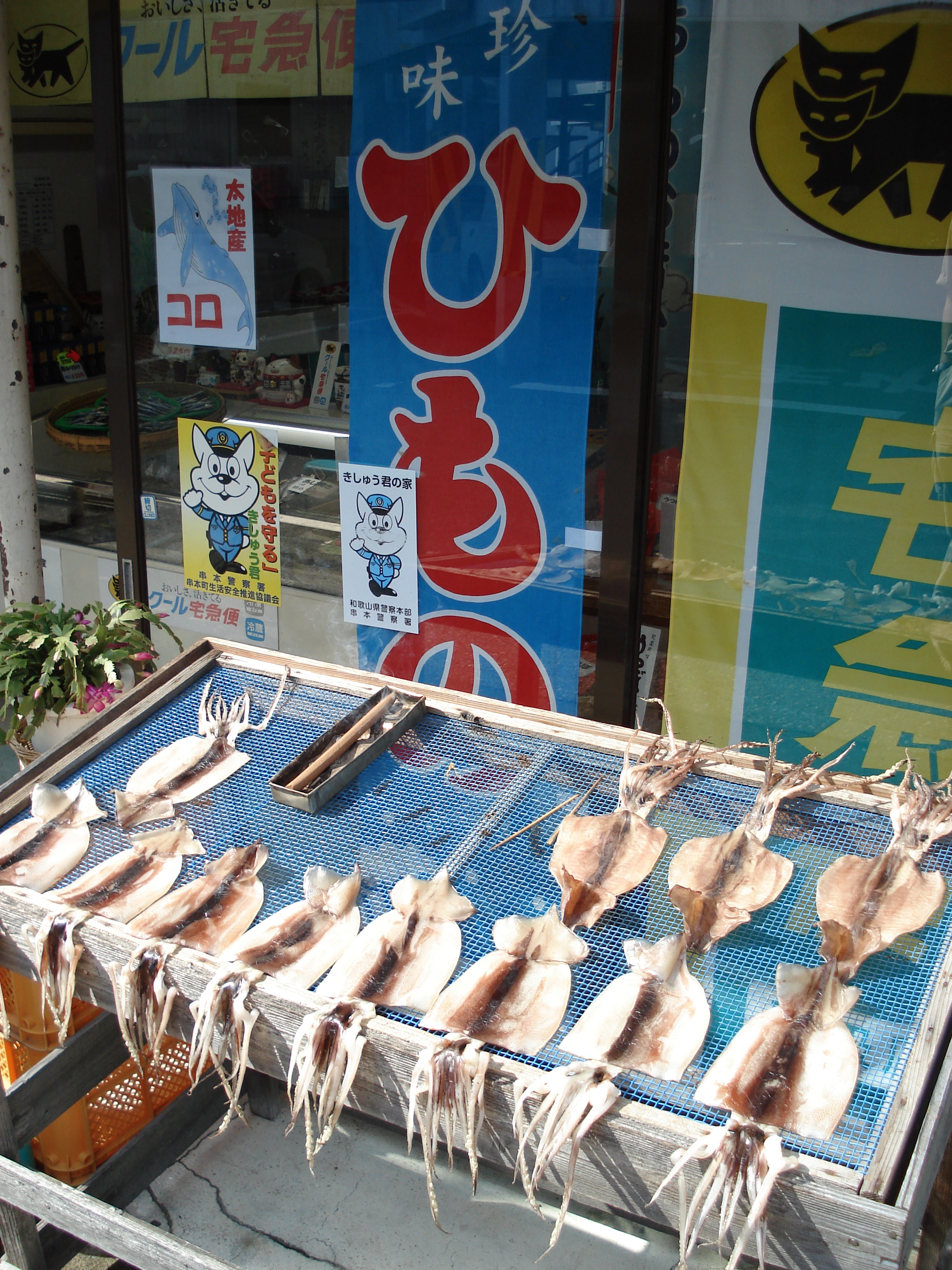 We still had a little time before catching our train, so we went to see some of the local sights, including more strange rock formations of Hashigui, and Shionomisaki, the very bottom of the south coast. It’s amazing how the prefecture has such small towns and almost no big cities. So everywhere you go, things seem to focus on nature — the sea, fishing, mountain climbing, whale watching, and so on.