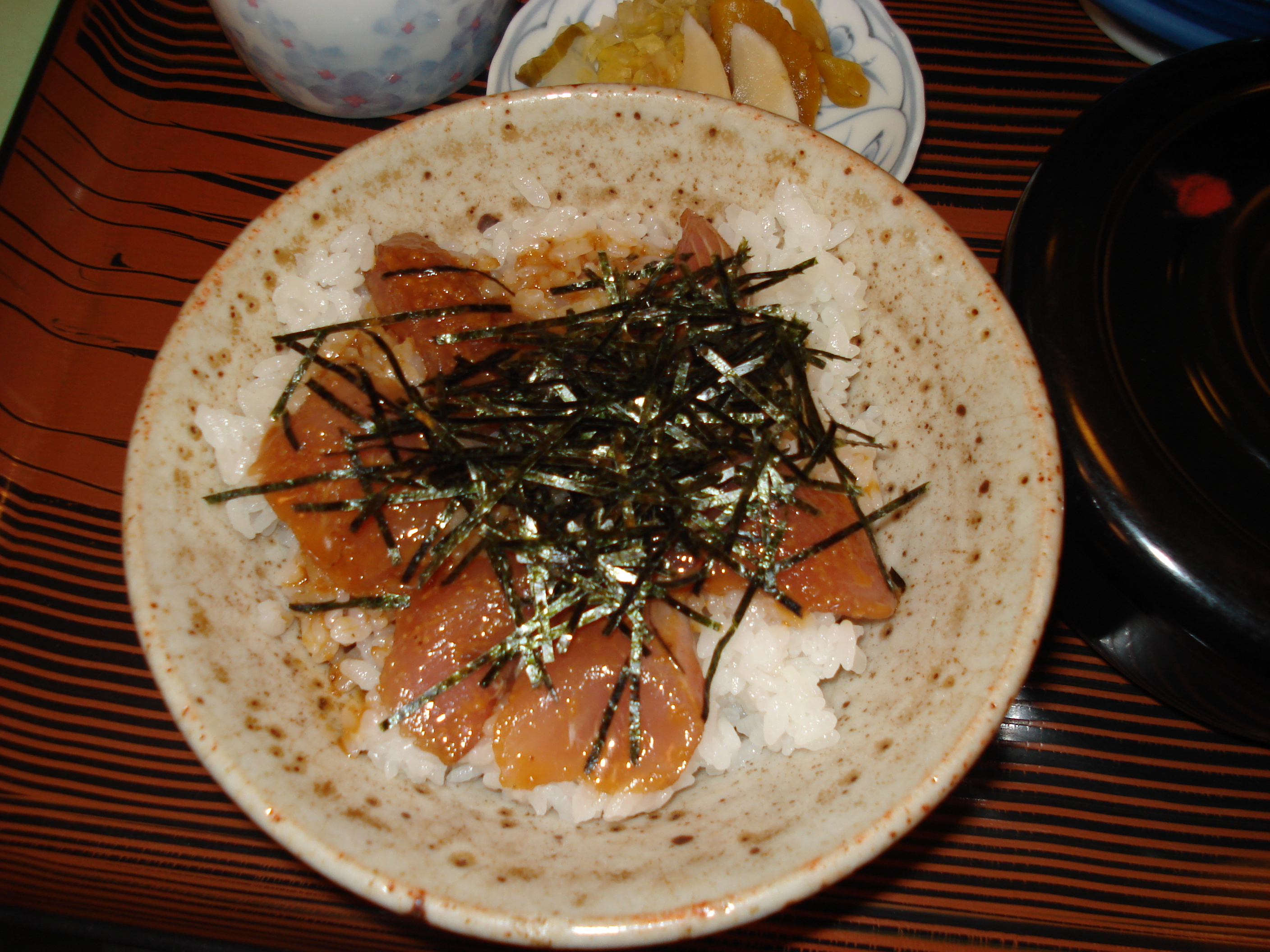Having recently picked up diving, I was curious to see the Kushimoto Marine Park. But first, my stomach was peko-peko, which is the Japanese onomatopoeia for empty/hungry, so we went for lunch. The small family-run restaurant we visited was basic, the tiles on the walls were a bit cracked, but the food was amazing. Marinated tuna sashimi, served on a bed of rice, with sliced seaweed on top. So good.