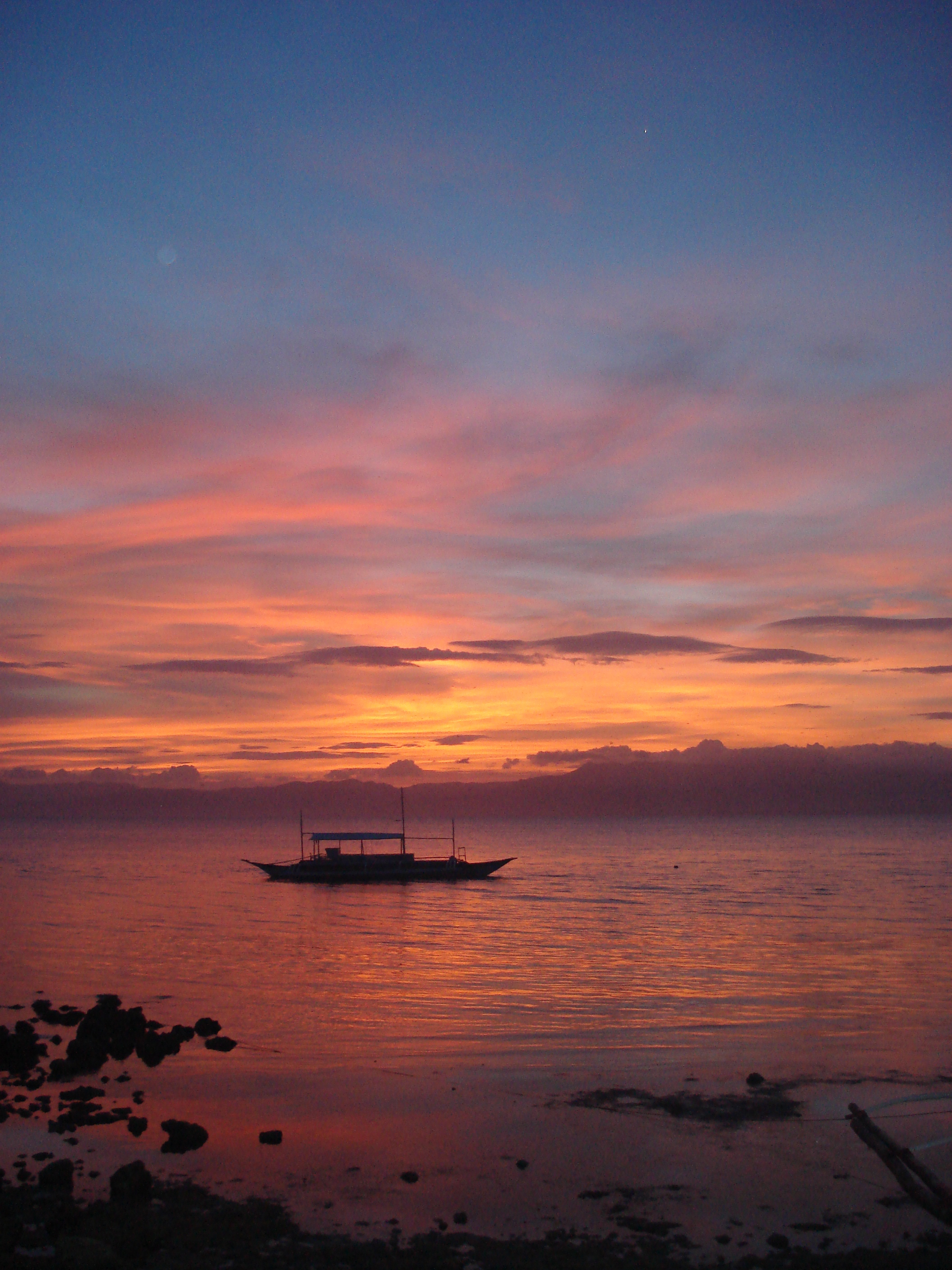 Thankfully, the diving kept us quite busy. Seiji was getting his PADI Open Water, and while he was doing all his theory, I was off on a banca (that’s a Filipino boat) with a group of some very quiet and serious Germans getting ready to descend 30 metres to get up close and personal with a very stubborn frogfish. The diving was amazing, as the entire coast is surrounded by a shallow reef that falls off into a deep abyss. Sharks, nudibranches, schools of sardines, parrotfish, and many many turtles kept us company on our dives. And nothing was quite as satisfying as coming up from a dive, and having an ice cold Negra beer while watching the sunset.
