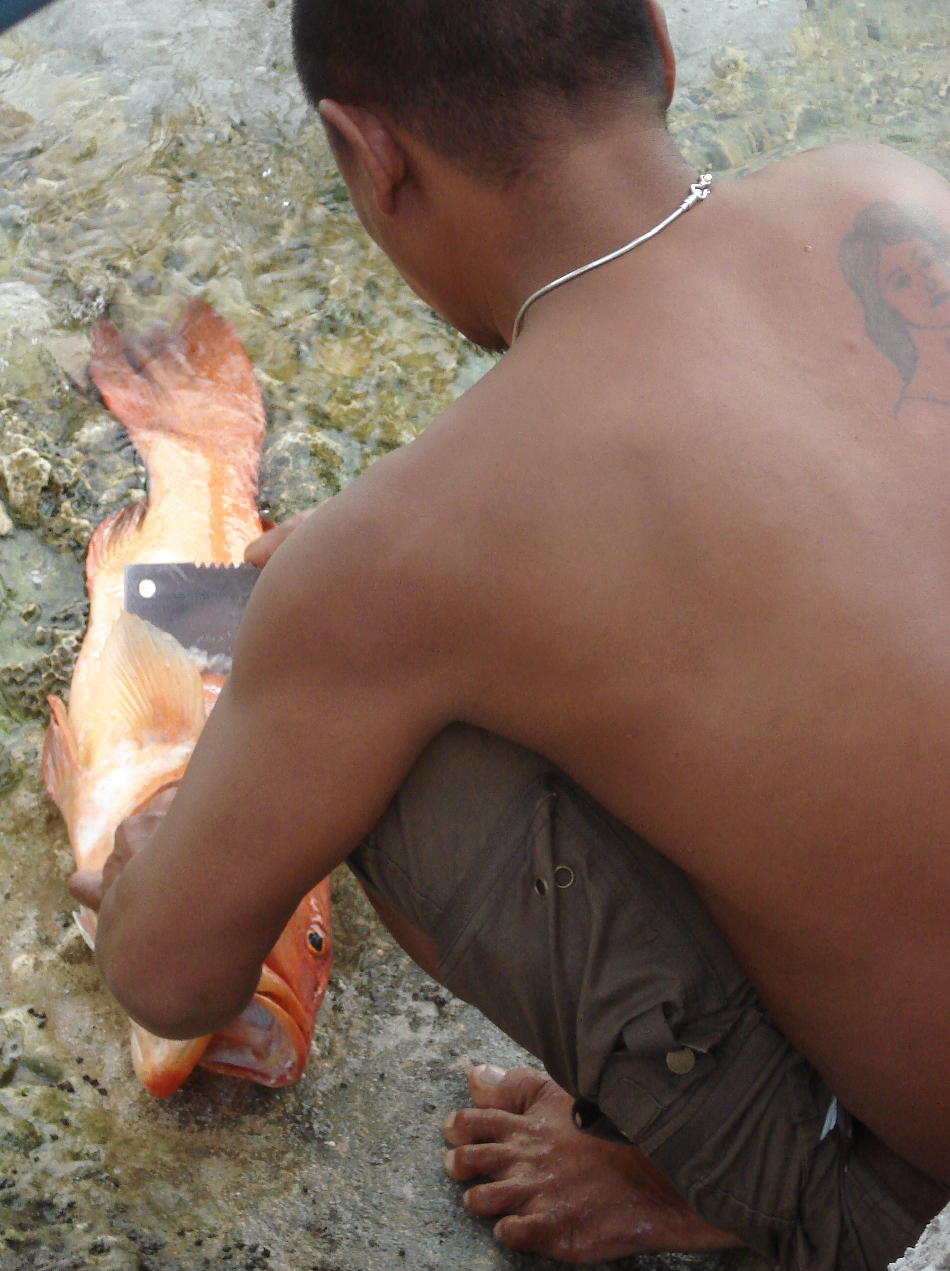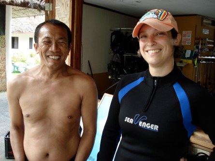 One night we had a great time at a local bar and ended up chatting with all kind of people, including the gorgeous Stella, who had to show us her estrogen pills to prove she was a real live ladyboy, and Dominic, the trilingual 15-year-old son of one of the German dive shop owners whose mom was local Filipina. Stella seemed pretty content to lime with us that night, as there were no… ahem… customers in town. Who knows how many San Migeuls were drank, but it was more than enough to give us a wicked hangover the next day.