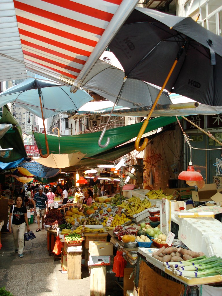 I keep going through the alley, and am back down on Queen’s Road Central, the main street that runs through the business district. The market disappears into the shadows of the skyscrapers as I start to make my way home, bag of chicken livers in hand.