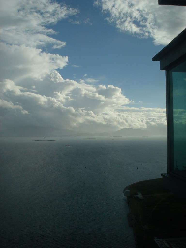 Anyway usually the view from the 51st floor is fantastic, with clear horizons, a sight of the Tsing Ma bridge which connects Lantau with Kowloon, and lovely mountains in the distance.