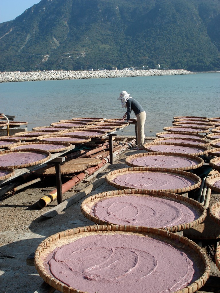 Another thing that Tai O is famous for is shrimp paste, so we went out looking for it. We finally found the area at the edge of town, and have to say it makes sense to make it so far away from the town centre because it stinks! One of the stinkiest foods in Hong Kong is ‘stinky tofu’, the highly fermented and extremely pungent tofu dish. The second stinkiest thing I have to say is Tai O shrimp paste drying in the sun. The tiny red shrimp are stored in giant vats in the sun where it sort of liquifies. Then they put the concoction through a machine that grinds it all up. It is finally spread over a flat bamboo plate and it sits in the sun to dry out a bit. You could smell that thing A MILE AWAY. I feel sorry for the people living nearby!