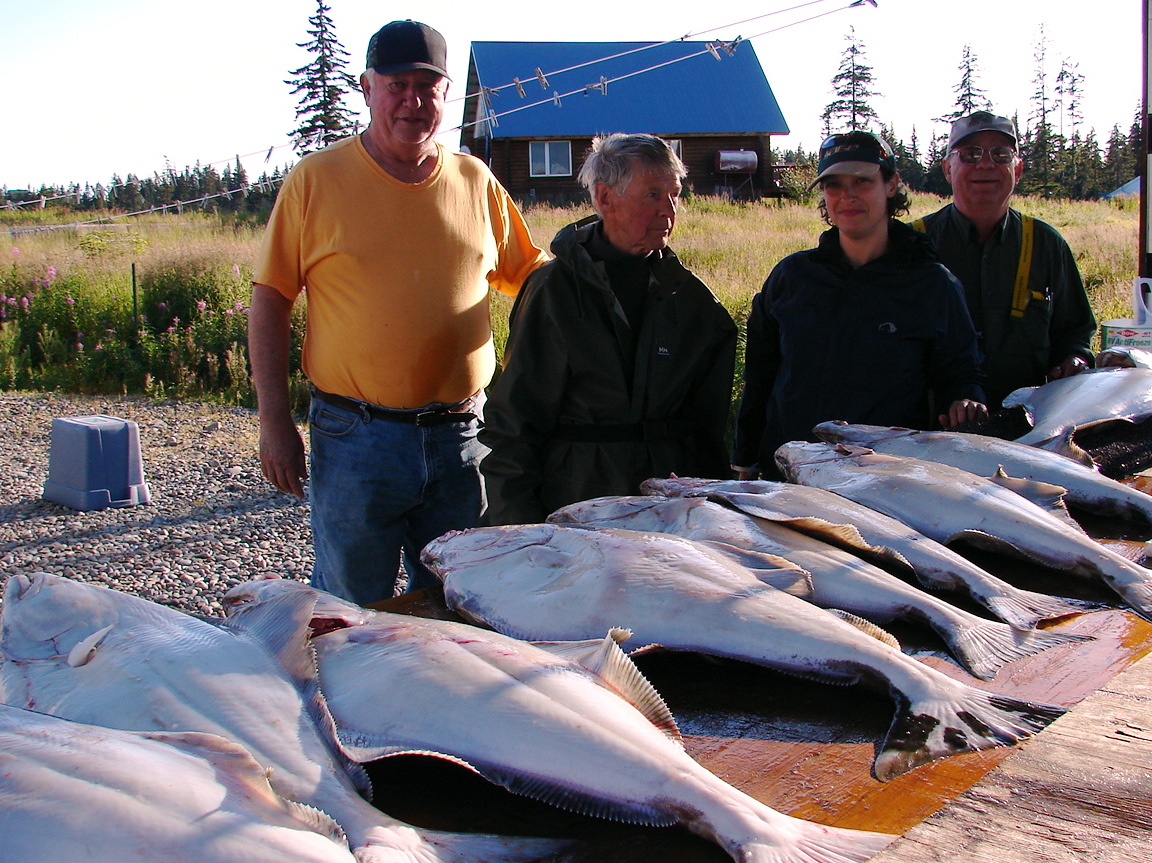 Anyways, the halibut fishing was an easy success. Almost too easy, in fact. The second you dropped the line and it touched the bottom, wham! Fish on, reel ’em up! We each caught two and they were a decent size, though I have seen pictures of people who have caught 150 lb halibut as big as a man.