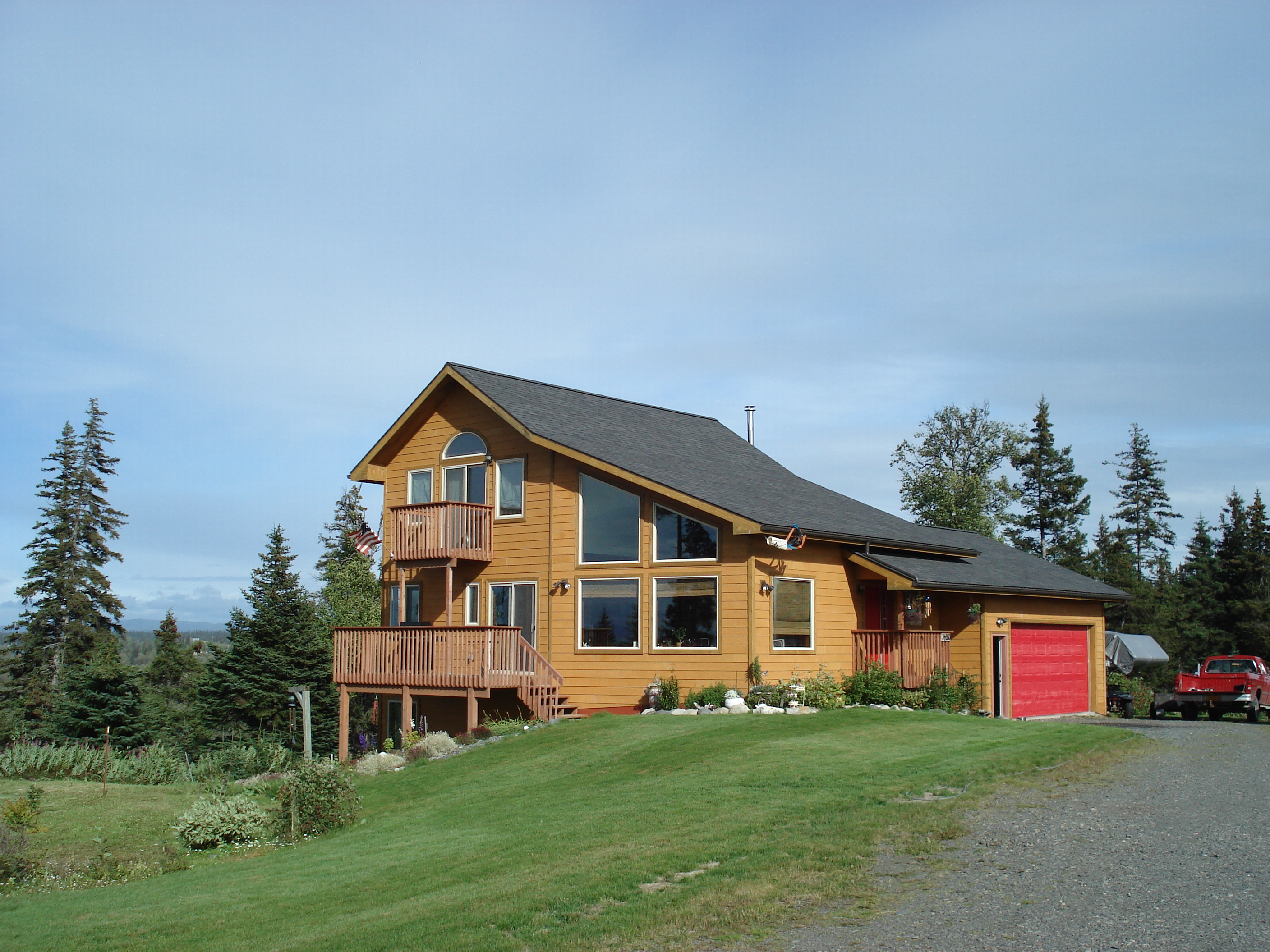 Gary and Eileen Sheridan are old friends of Seiji’s, having met each other many years ago on the Anchor River where they go fishing. I think their home is one of the most beautiful I have ever seen. Lots of wide open space, lush forests, and a million dollar view across the bay, with 30 miles of visibility to the stunning volcanoes of Mt. Redoubt and Mt. Iliamna. In the evenings the sunset lights up the icy blue glaciers and paint the sky. One night a huge mother moose and her two babies ambled through the garden, munching on berries.