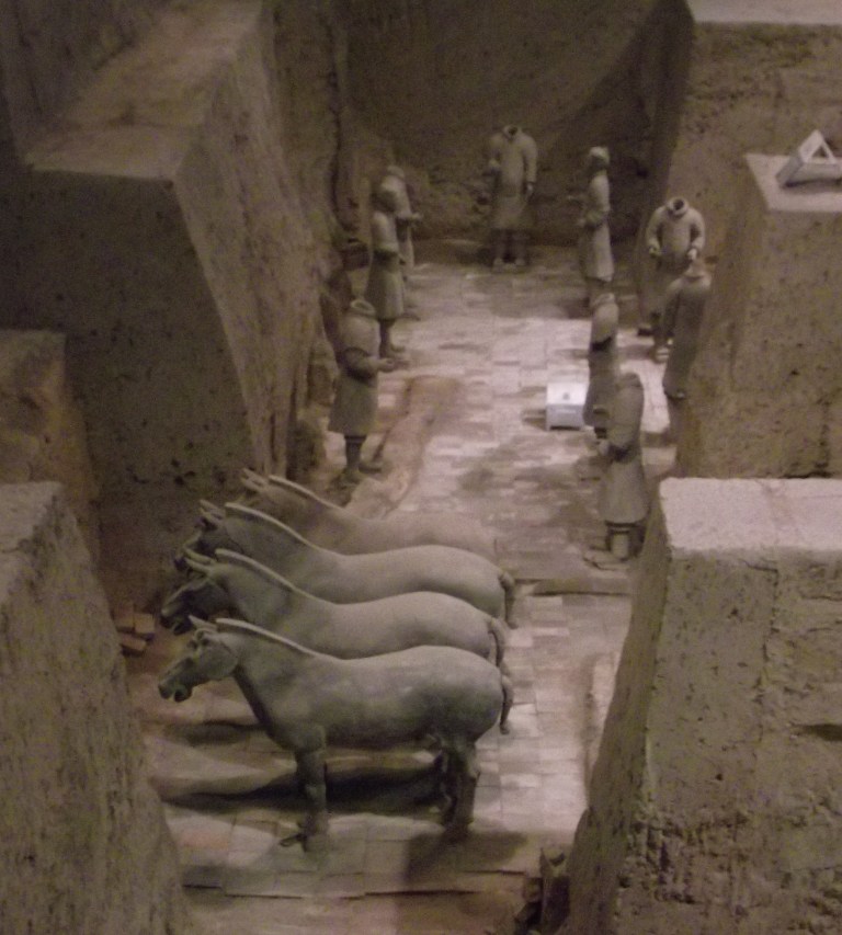 Of course, no trip to Xi’an would be complete without a tour of the famed Terracotta Warriors. The story of how this tomb came to be is quite fascinating. The 8,000+ statues were built for Emperor Qin Shi Huang, who became the very first Emperor of China in 246 BC. He is credited for uniting China into the vast country it is today. Emperor Qin also built the Great Wall. I have no doubt this man was absolutely mad. Anyone who builds both the Great Wall and an 8,000-strong terracotta army is definitely a bit crazy. Our tour guide told us that the Emperor also used to eat mercury, since this is what the workers used to preserve the colour of the army figurines. Like I said, absolutely mad. The Emperor also killed every single worker who was forced to work on this insane project of building a super army to accompany the Emperor into the next life safely when he passed away. They say that is the reason why every single face of the 8,000 warriors are different — the slaves who were brought in to build them built their warrior in their image as they knew that once the work was done they faced certain death. And indeed, each face is different, and the clothing is different, and the shoes are different.