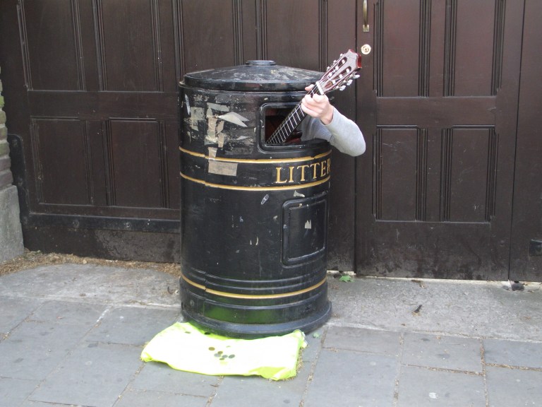 Back on dry land, we came across this oddball street performer who was definitely working hard for the 50 pence that people kept putting in his collection. Anyone can stand up on the side of the road and play a guitar, but this guy took it to a whole new level. Love it!