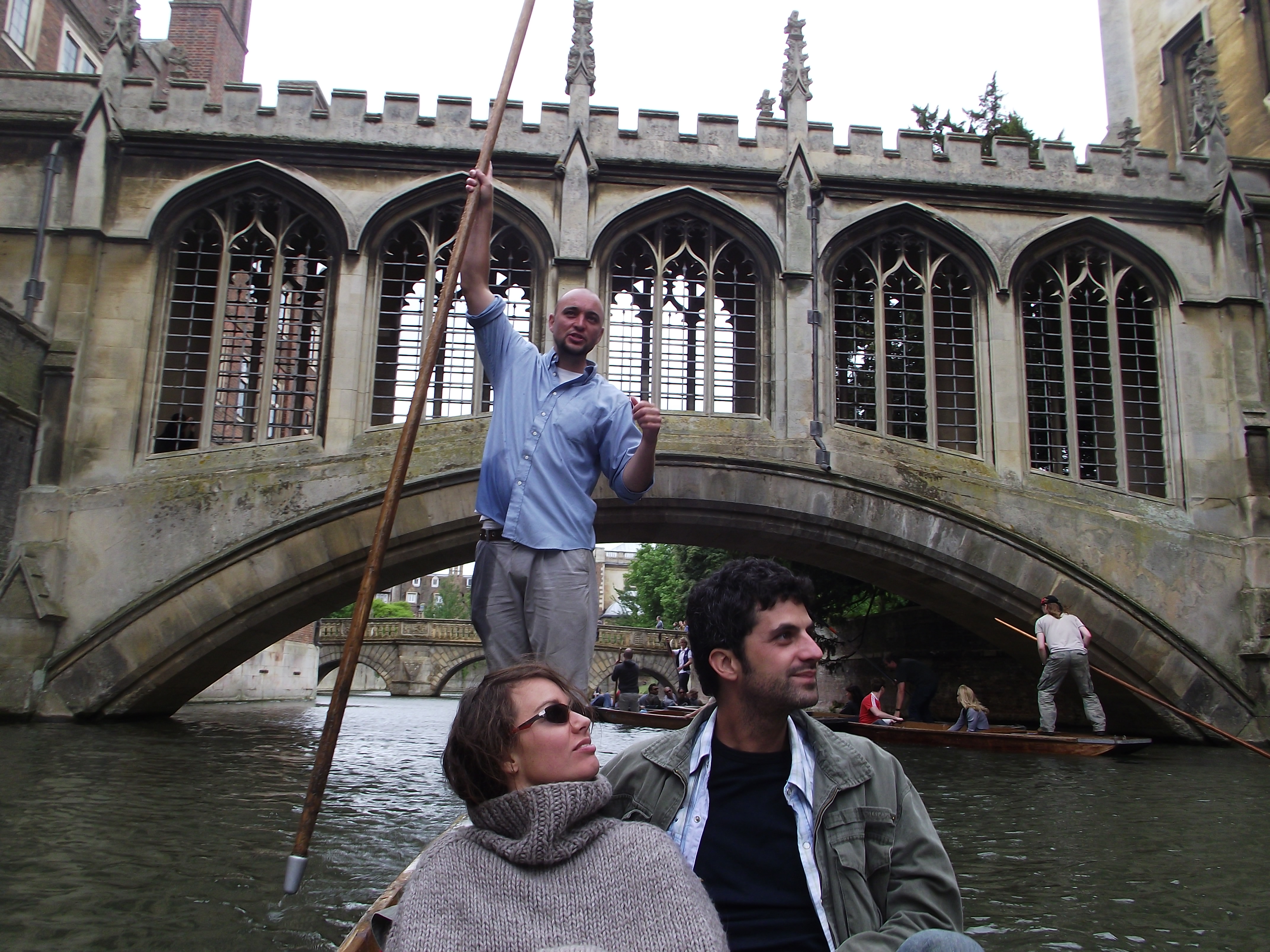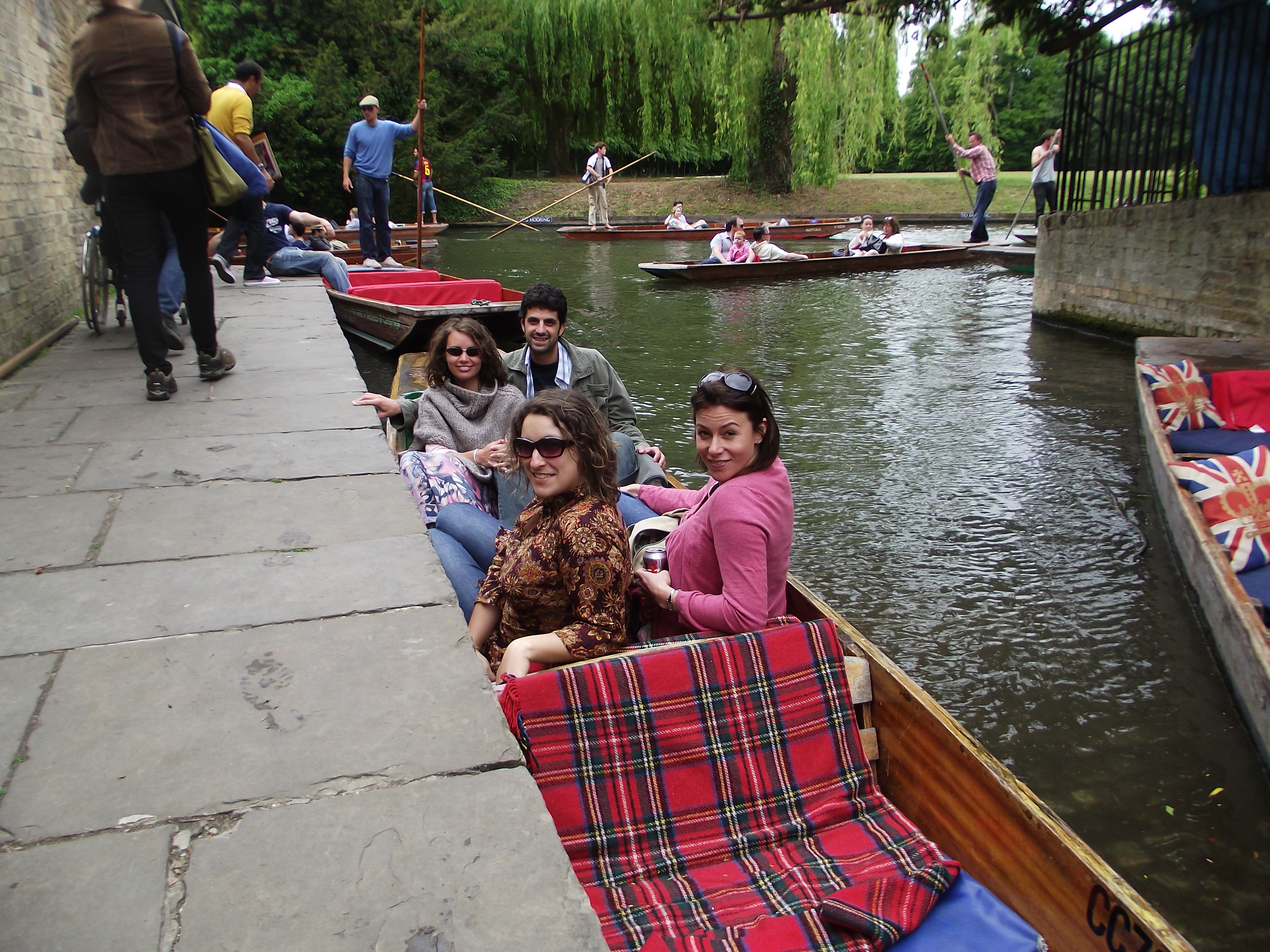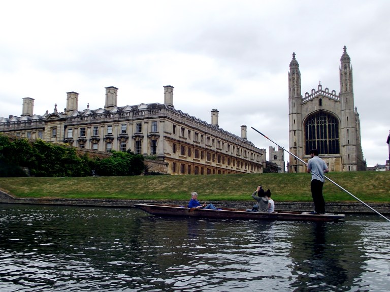 And after just one night we were off again to visit Cambridge, as we were invited to a farewell BBQ lime. We arrived a few hours early to go punting along the River Cam — a popular and famous pastime of Cambridge folks. Those of you who don’t know what punting is (like me), it’s a style of river boat whereby the punter (guide) stands at the back of the boat, and with a long pole pushes and directs the boats through the shallow and sometimes narrow canals and under bridges.