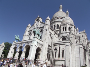 But above all, this hill top is famous for it’s beautiful Basilica of the Sacred Heart of Jesus (Basilique du Sacré-Cœur). Even from the street level in the area around my hotel, you can see the white domes of the Basilica towering up above in the distance. Still a functioning church, the tourists are luckily still allowed in, even during mass, once they keep quiet and follow the walking route around the edges of the main hall. I wish I could have taken pictures inside, as it is incredibly beautiful, but photography was forbidden.