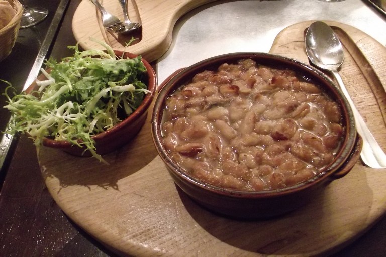 I thought that things like a massive roti full of chicken, bodi and pumpkin and so heavy you have to hold it with two hands was something that sits heavily in your stomach. I thought that a Sunday lunch, with a big piece of macaroni pie, stew chicken and callalloo chased with a cold beer was the type of thing to make you lie down and rub your bloated belly in contentment. I thought that spoiling yourself with a full — not a half — rack of ribs was one of those decadent indulgences that left you full and pleased (and maybe a little guilty). But I have never had anything as rich, and succulent, and sinful, and FILLING, as Toulouse’s famous dish, cassoulet!