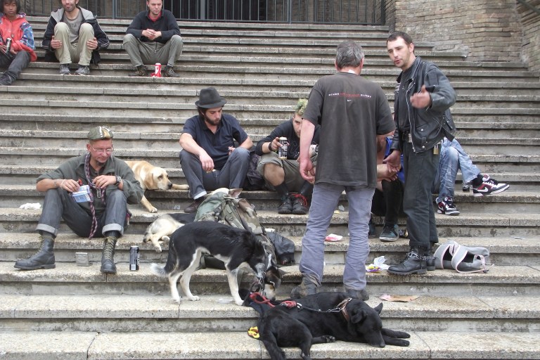 2. I’m from Spain and there are many similar-looking people around here. They aren’t homeless, they are “okupas”. It’s a lifestyle where they occupy houses that are abandoned or not currently being used to avoid paying for rent. It’s usually done for reasons besides poverty (politics or values, want to avoid paying for a lot of things, they just have friends who are okupa, etc.). Usually on the extreme sides of the politics spectrum. They’re squatters, basically. I think most have dogs because there are laws saying they can’t be arrested if they have a dog or something like that, I don’t know the details.