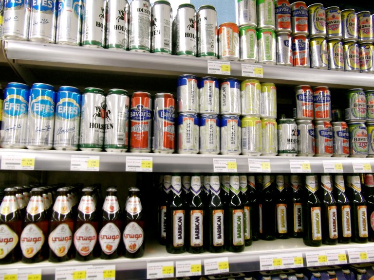 One of the things that Westerners have to adjust to when moving to an Arab nation are the rules regarding alcohol. As Muslims are not supposed to drink alcohol, you cannot buy booze in the general supermarkets or convenience stores. However, they do have a massive fake beer section in almost every supermarket. Looks like beer… and in fact the bright blue can on the middle shelf is made by Efes, a Turkish brewery that makes delicious <and very real> beer. I haven’t tried one of these yet, but maybe I should? Who knows, maybe it tastes good.. and of course with no risk of hangover?