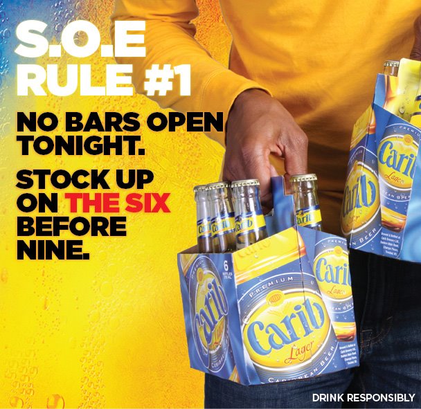 Trinis, being the good-natured, easy going, ‘dem-no-worry-we’ kind of people, immediately recognised the state of emergency for what it is, and started writing it off as a big joke. Facebook, the all encompassing social media site that is a great way to spread information, was quickly flooded with posts from popular bars, restaurants and clubs, saying ‘Come to the Curfew Lime! Happy Hour from 2 pm to 6 pm! 2-4-2 specials on all drinks before lockdown!’ The local beer, Carib, even started doing a series of curfew ads, poking fun at the curfew restrictions.