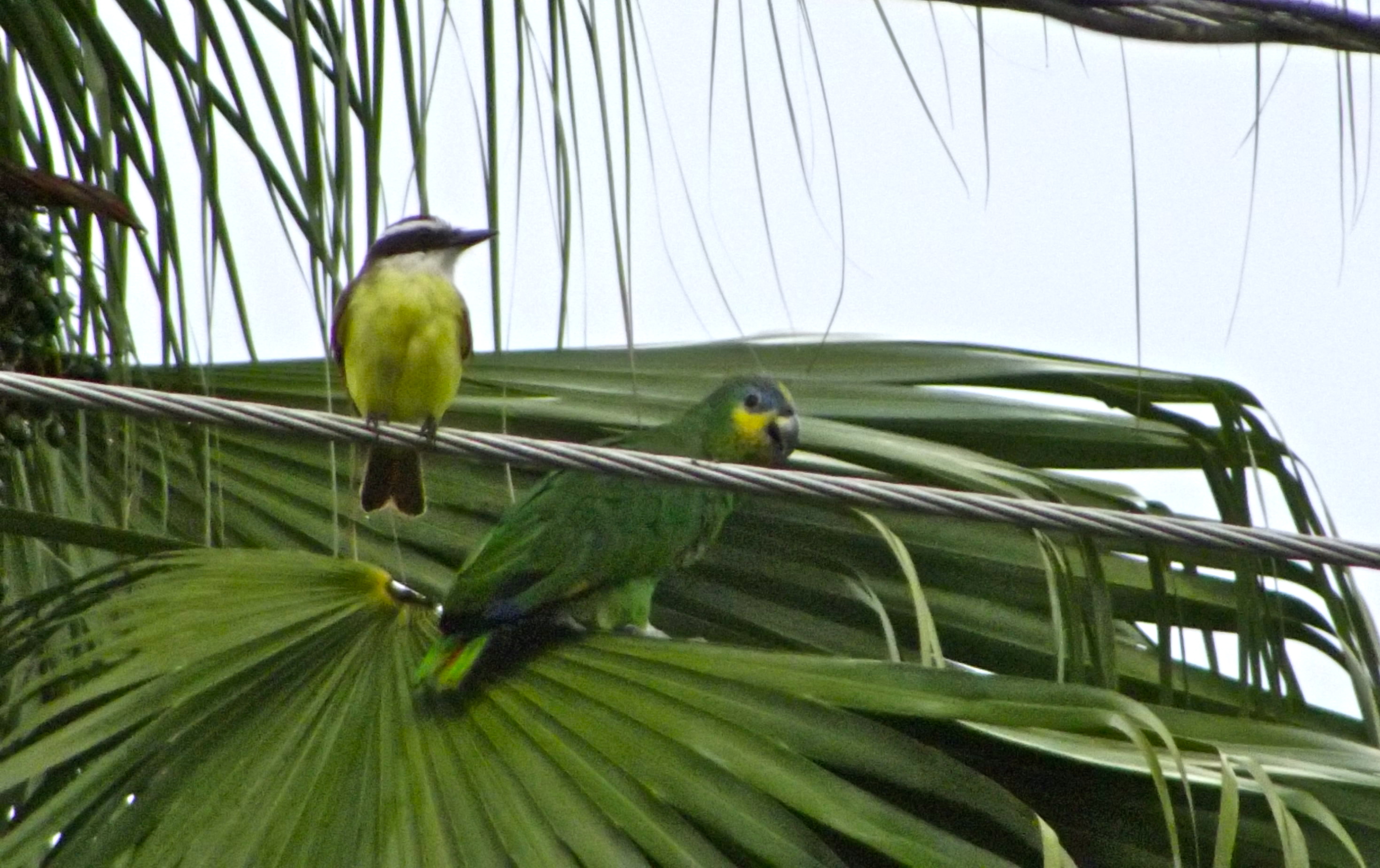 - Watching the parrots roosting in the tree across the road (see pic above… the kiskedee is NOT impressed)