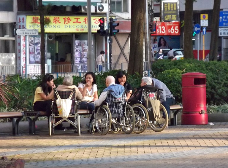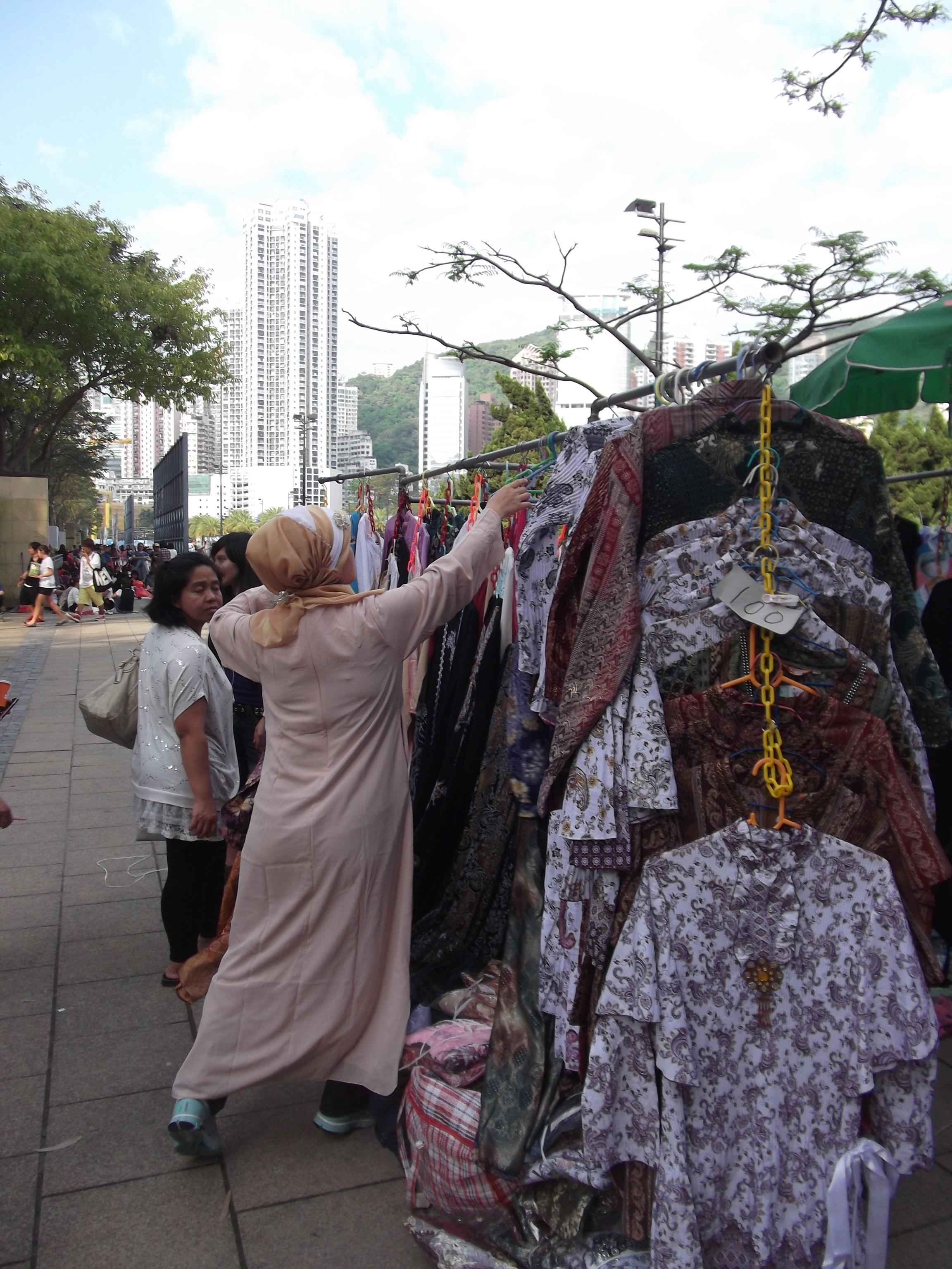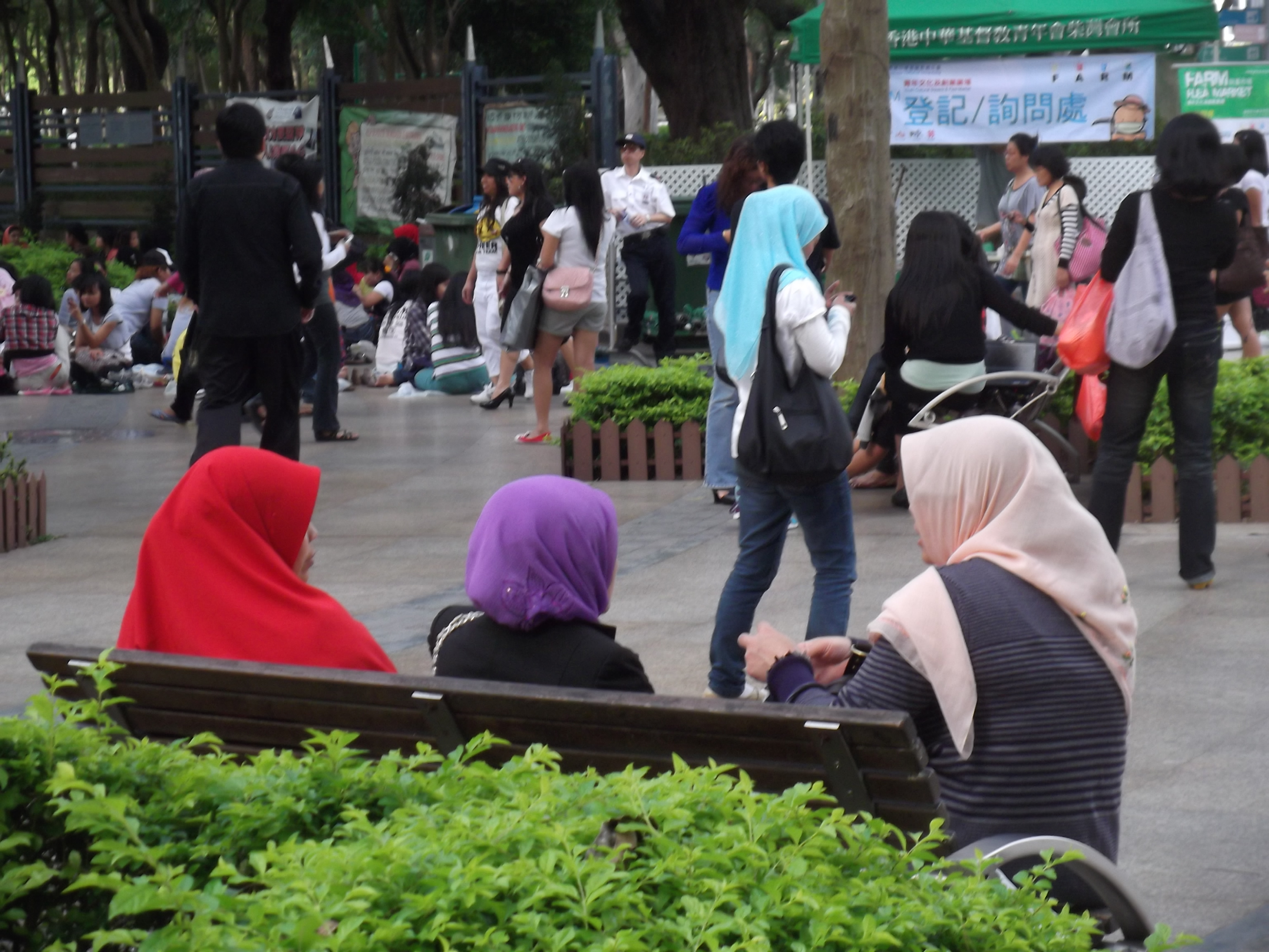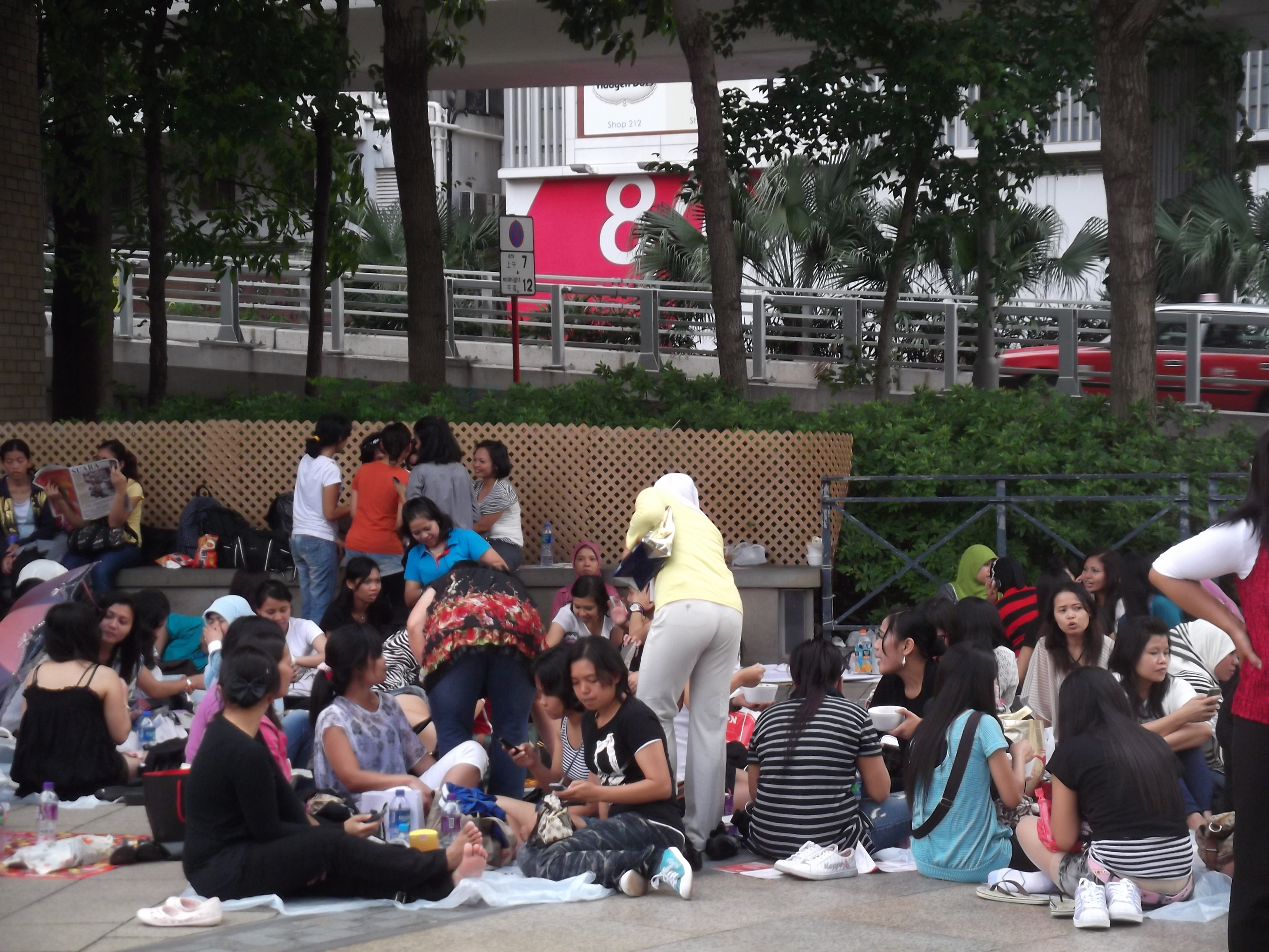 The first time I came to Hong Kong I had no idea what all these women were doing outside. I thought, are they attending some kind of event? Is there a protest going on? I kept looking around for some kind of festival going on, but found nothing. What are they all doing out here? I kept wondering.