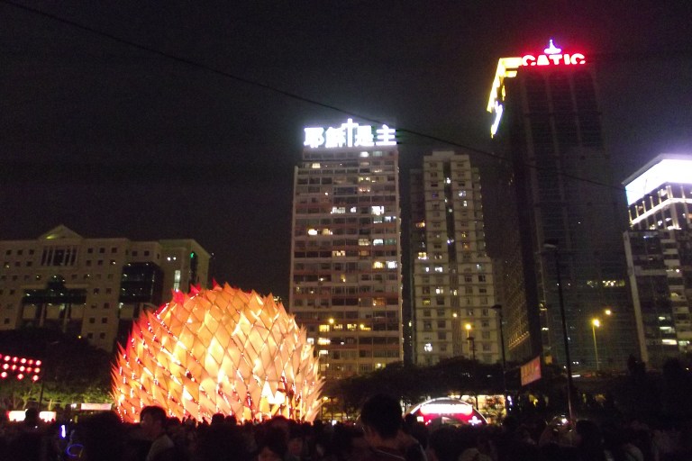 Instead there were only THREE lame-assed displays: one huge durian-looking thing with about 50,000 people crowded around it, so you know which one I avoided getting close to; a nice looking dragon (but you know what they say about the adjective ‘nice’); and a sort of pavilion with orange lanterns. And that was it!