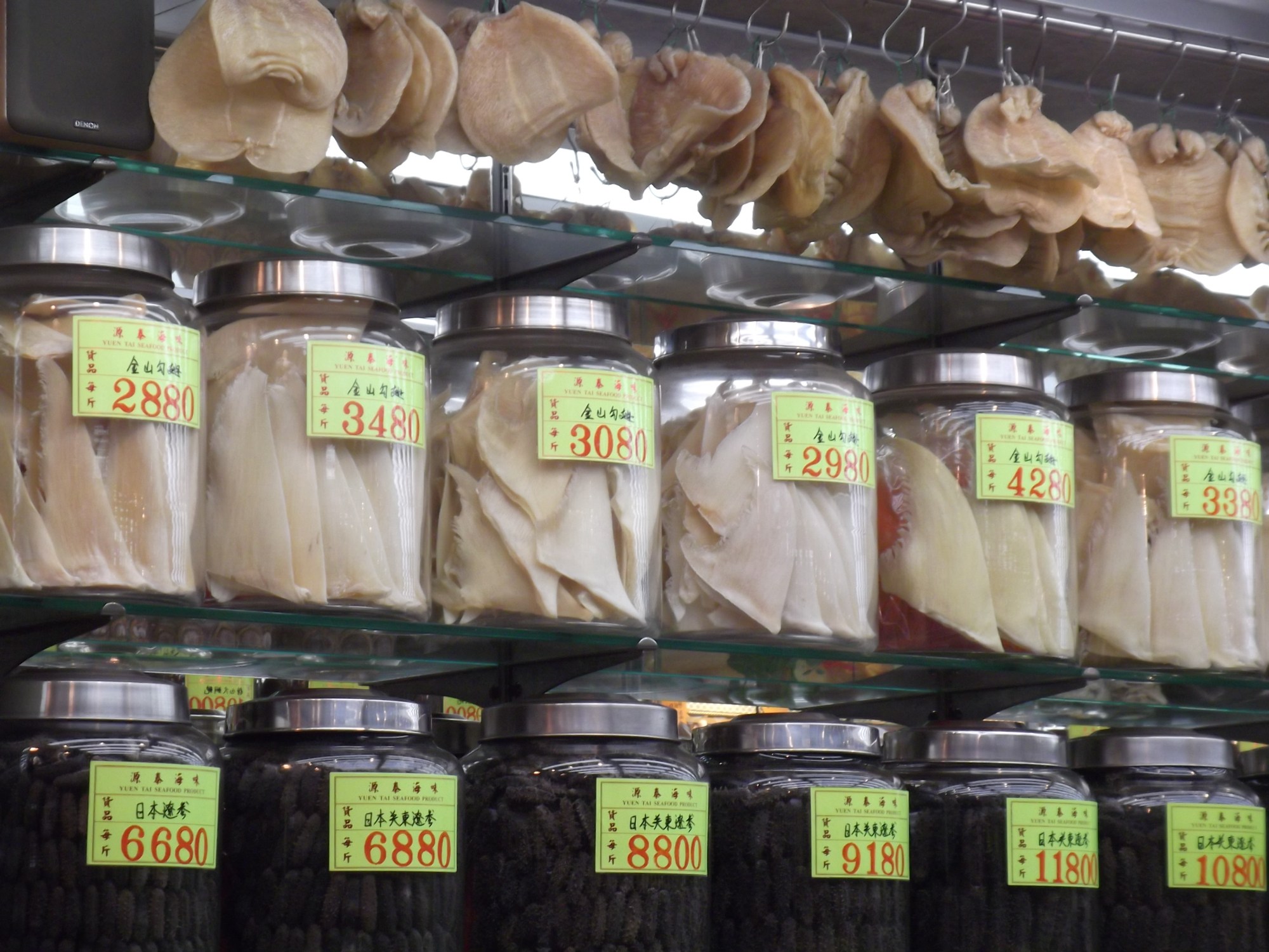 The NGO Papa Bois Conservation asked me to get some pictures of shark fins being sold and traded here in Hong Kong, and I was more than happy to hit the road with camera in hand. But taking pictures is not so easy. The shop owners stand vigil at the entrance, shooing away tourists and people who try to take pictures. The shops have extensive security, with many cameras watching you. And a few have signs that say they have the right to take your camera away if they catch you taking pictures. The shop owners know the fin trade is a controversial and increasingly unpopular one, and are taking measures to make sure people don’t come and interfere.
