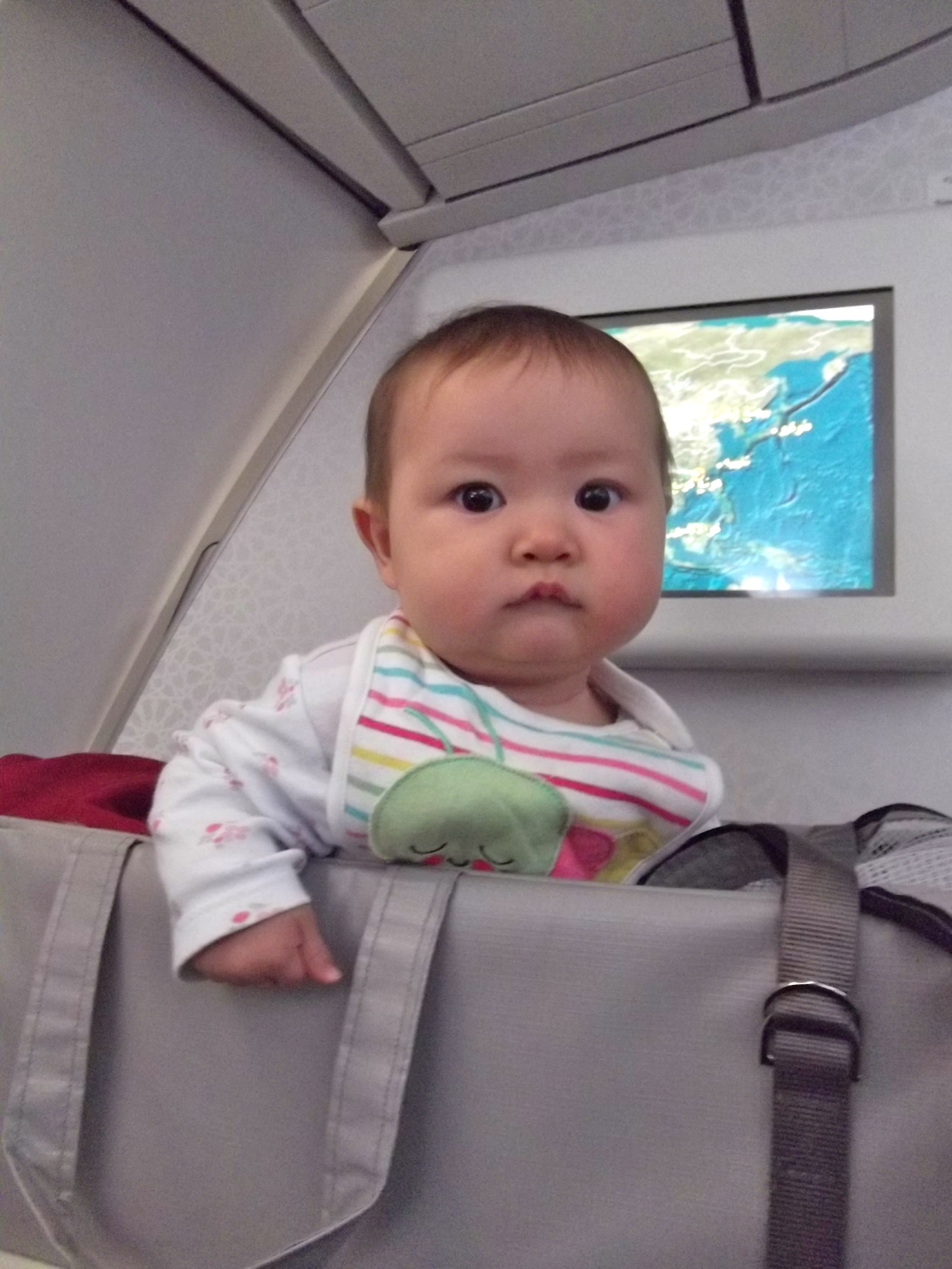 And my little popo… what a spoilt child. As the seat next to me was empty on every leg of the journey, she got a business class seat all to herself to spread out in, as well as a drop-down bassinet with a fluffy blanket, and lots of toys and affection from the flight attendants. How oh how will I ever be able to take her on a low cost carrier after experiencing the joy of turning left on the jetway and being magically whisked away from the coughing, sneezing, stinky proletariat, the cramped conditions of economy where your elbow is facing a battle worthy of the Spartans, where utensils are plastic and the food probably is too. Nope, this is a Business Baby!
