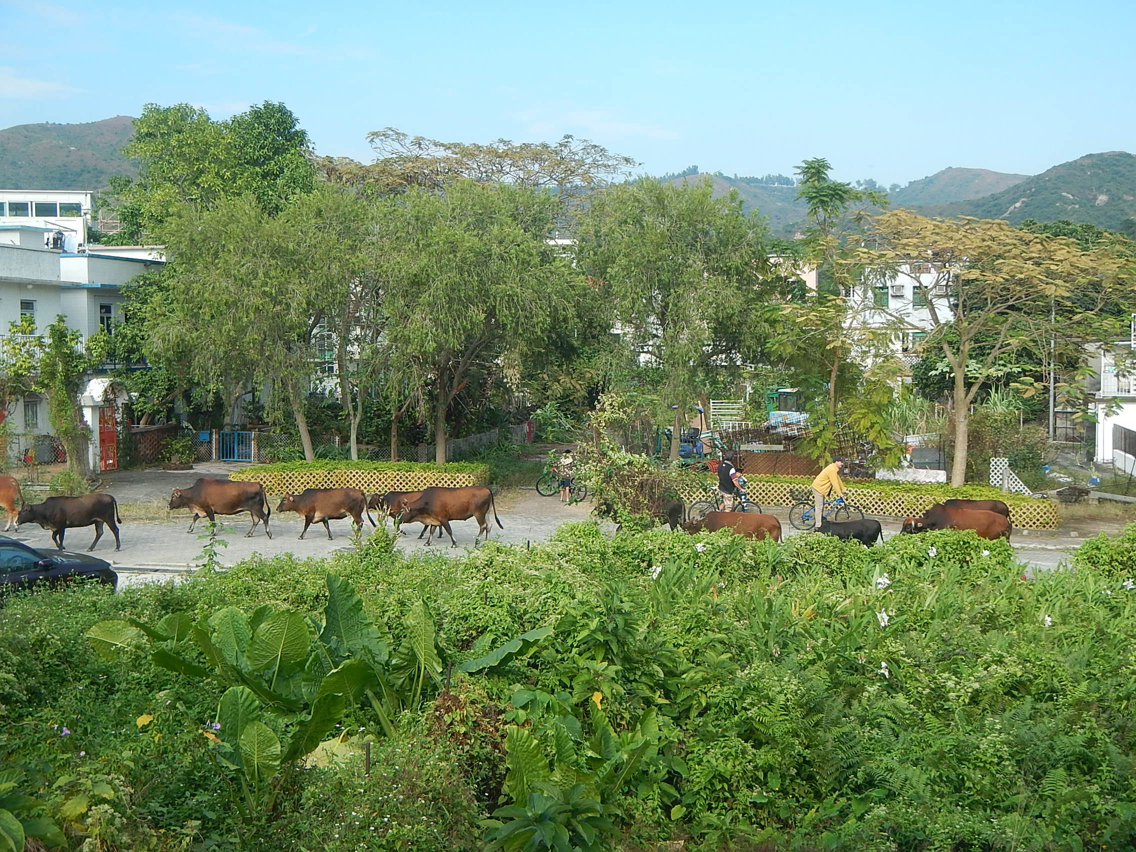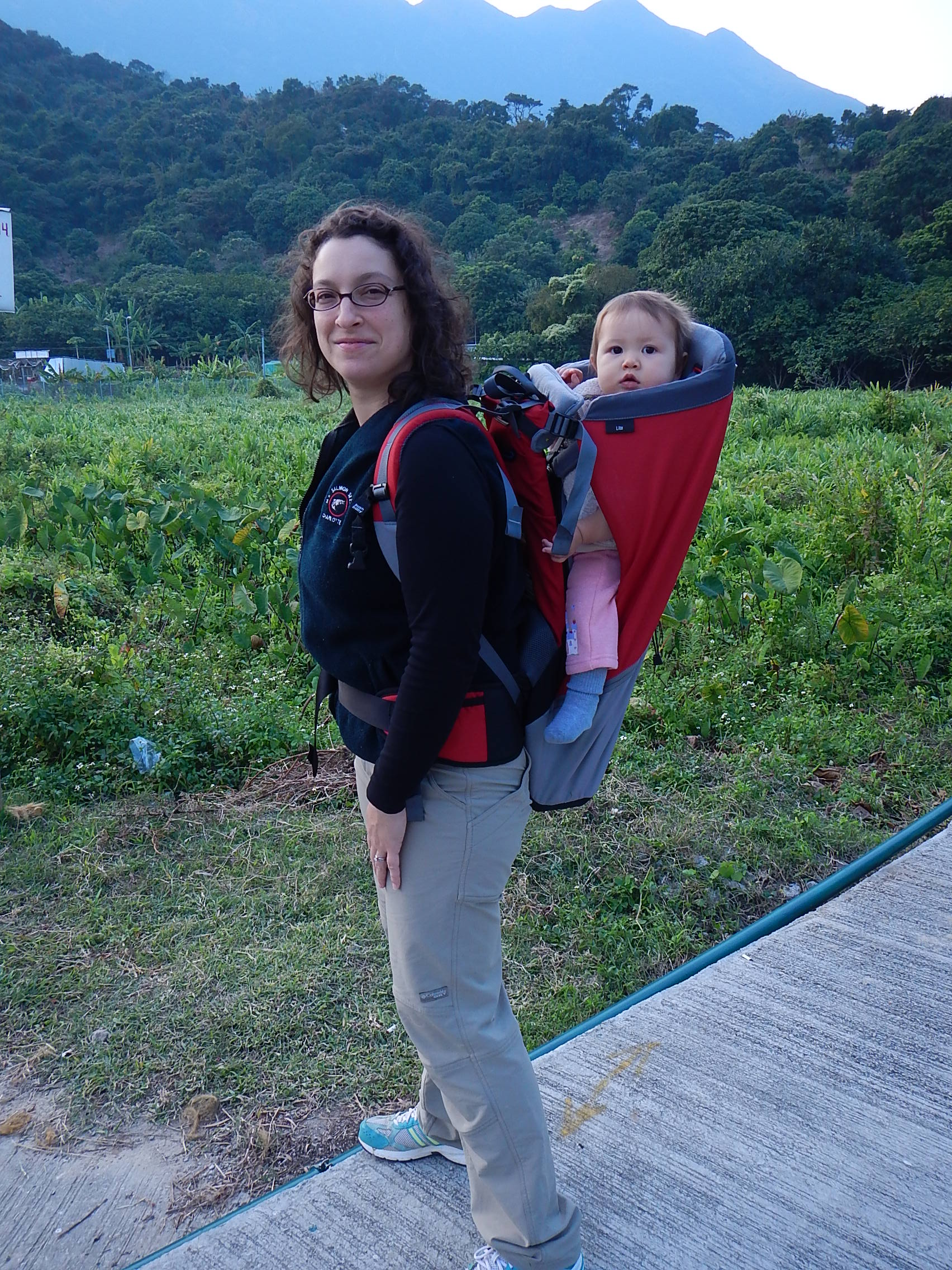 It certainly makes life a lot faster — by bike you can get to the ‘downtown’ Mui Wo in about five minutes, as opposed to 20 minutes on foot. Big improvement, if you ask me! Only problem is, the kid hates the helmet and screams whenever I latch it on. She should be glad she isn’t in Thailand where parents pile five kids on a motorbike with no helmets and no safety precautions and a dog in the front basket!