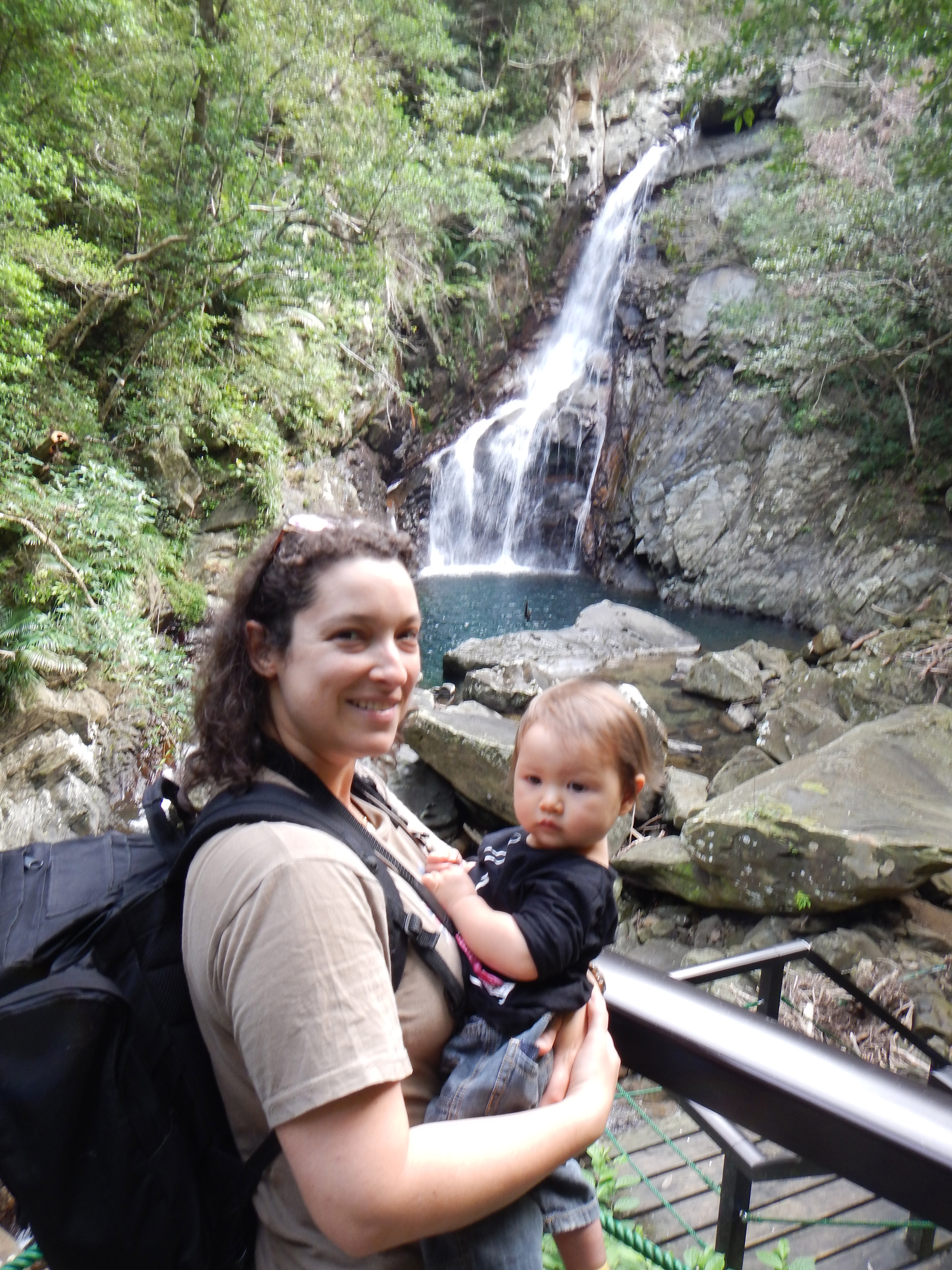 Next up, we drove north to try to find the Hiji Waterfall. It was an easy hike through a beautiful, lush forest on a very well maintained trail. In fact, a bit too well maintained if you ask me. One of the goals of hiking (for me, at least) is to get off the concrete road and follow the dirt footpaths made by the constant, repetitive footsteps of those who have gone before, winding through the mountains, following the rivers. But unfortunately, as is so common in Japan, nature has been tamed, restricted, paved over and controlled. My husband often laments this fact of life in his country — rivers get big reinforced walls built into their sides, mountains get ploughed through to make way for a tunnel, hillsides get retaining walls, and beaches get groins and fake sand and nets. Don’t get me wrong; the hike was gorgeous and it was a beautiful day. But perhaps as a Trini I just do not get the concept of telling people not to jump in a waterfall! That is what waterfalls are made for, right? It was a nice hot bright day, I could have jumped in that water real easy, rules be damned. Or should I say, dammed.