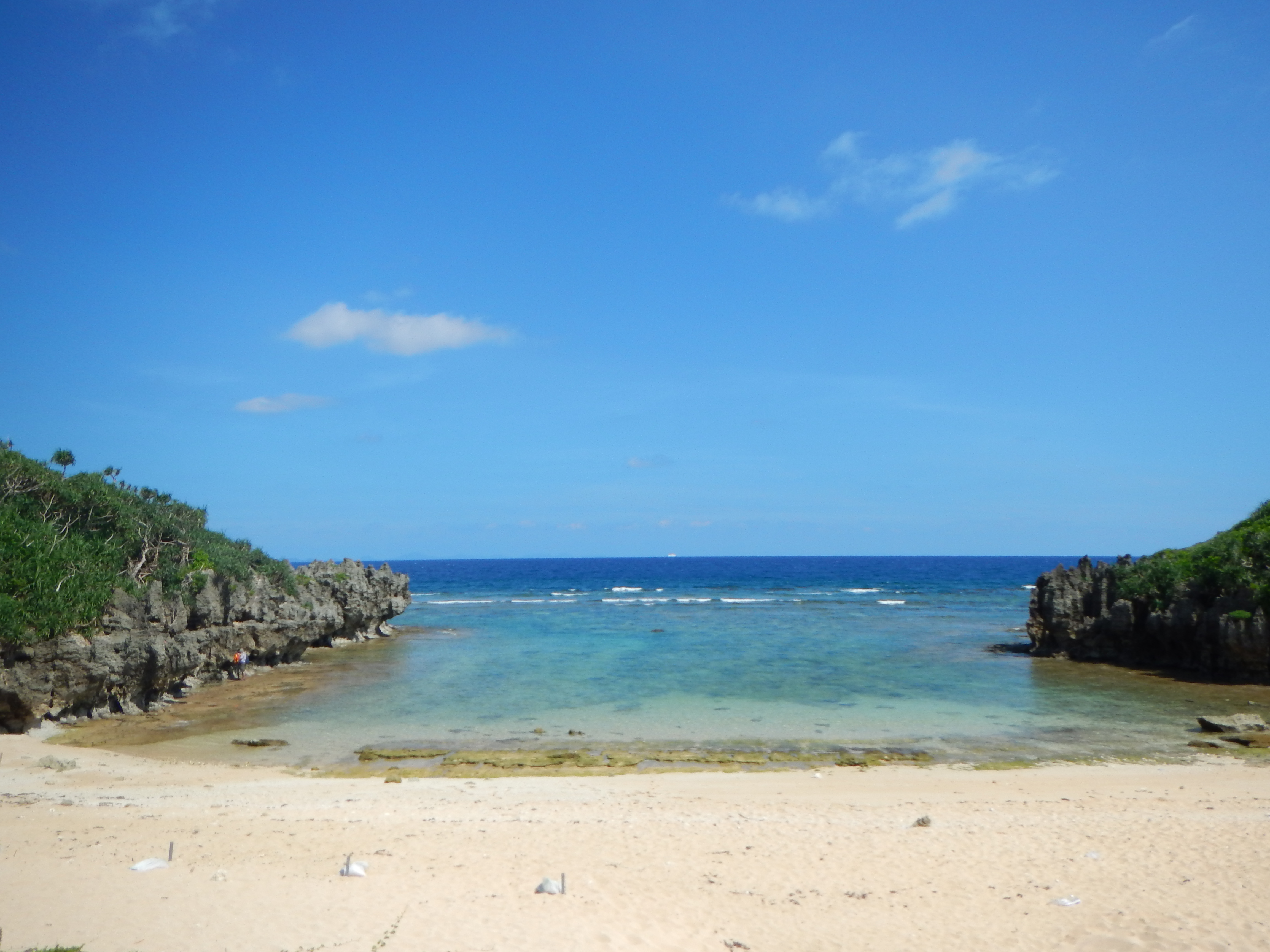 If you can manage to find the tiny sign that leads you to Cape Bise (or in Japanese, Bisezaki), you’ll find a little piece of paradise with incredible snorkelling. Parking is ¥500 and there are public bathrooms and even pay showers at a tiny dive shop, if you need to wash off after the dip. Just behind the beach is a beautiful path that goes through a tunnel of trees. It’s green and shady, and you can rent bicycles to ride through it. But it is hard to find indeed!