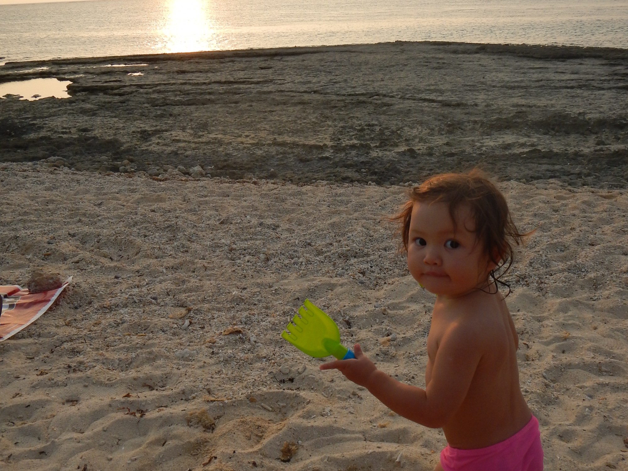 The pension that we stayed in was right on a small beach, which wasn’t great for swimming but was good for walking in the early morning, picking up hermit crabs. I like that my child is now of that age where she is aware of and curious about the natural world, even a tiny crab crawling around on the sand. Okinawa must be a great place to raise a kid…