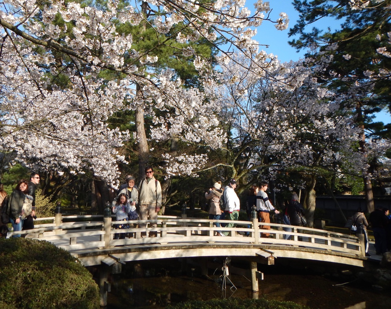 Next to the castle is Kanazawa’s second most famous site – Kenrokuen Gardens, which was voted as one of Japan’s three most beautiful landscape gardens. The gardens were carefully grown and styled over a period of 200 years, with ponds, fountains, bridges, walking paths, and lots and lots of cherry blossoms.
