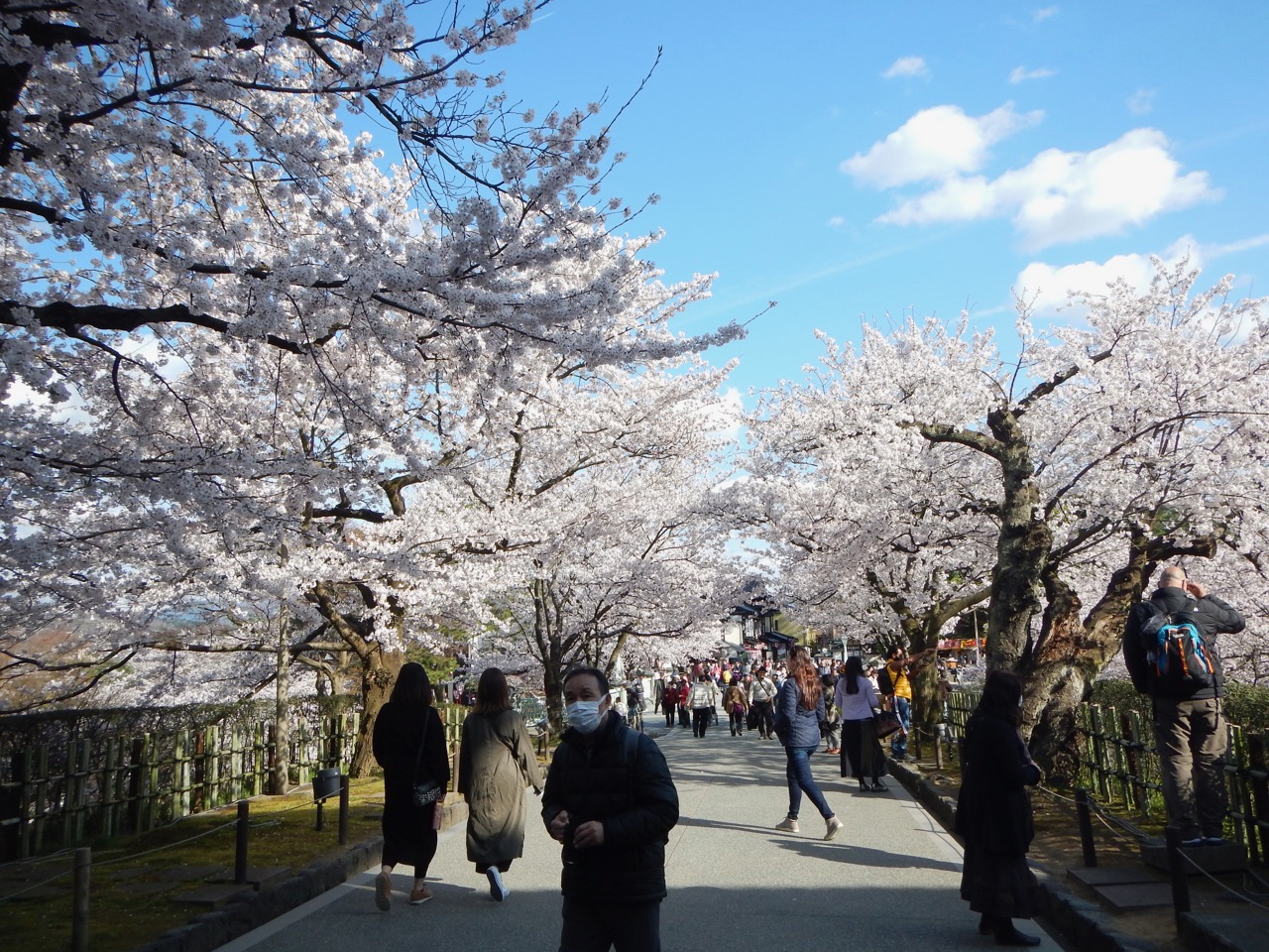 Traffic and parking close to Kanazawa Castle is a bit of a nightmare, so if you can take public transport, it’s a good idea. From the main road below, it’s a short walk up a hill to get to the castle grounds. The hill was also lined with cherry blossoms.
