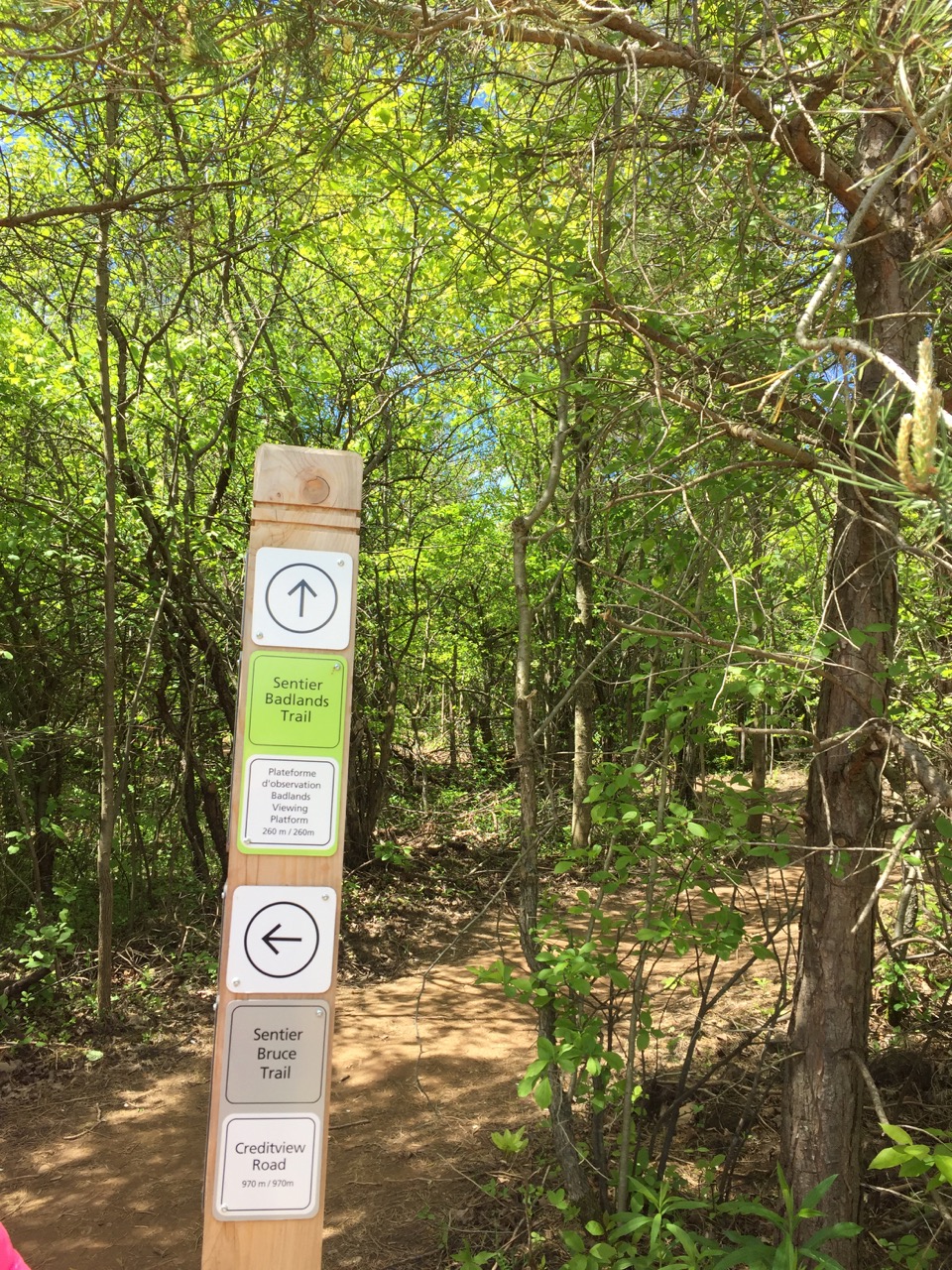From the car park on Olde Base Line Road in Caledon, you take a short walk along the Bruce Trail until you reach the Badlands Trail. It is easy to follow and there are signs pointing you to the turn for the Badlands Trail. In total, the walk through the forest takes about 15 minutes.