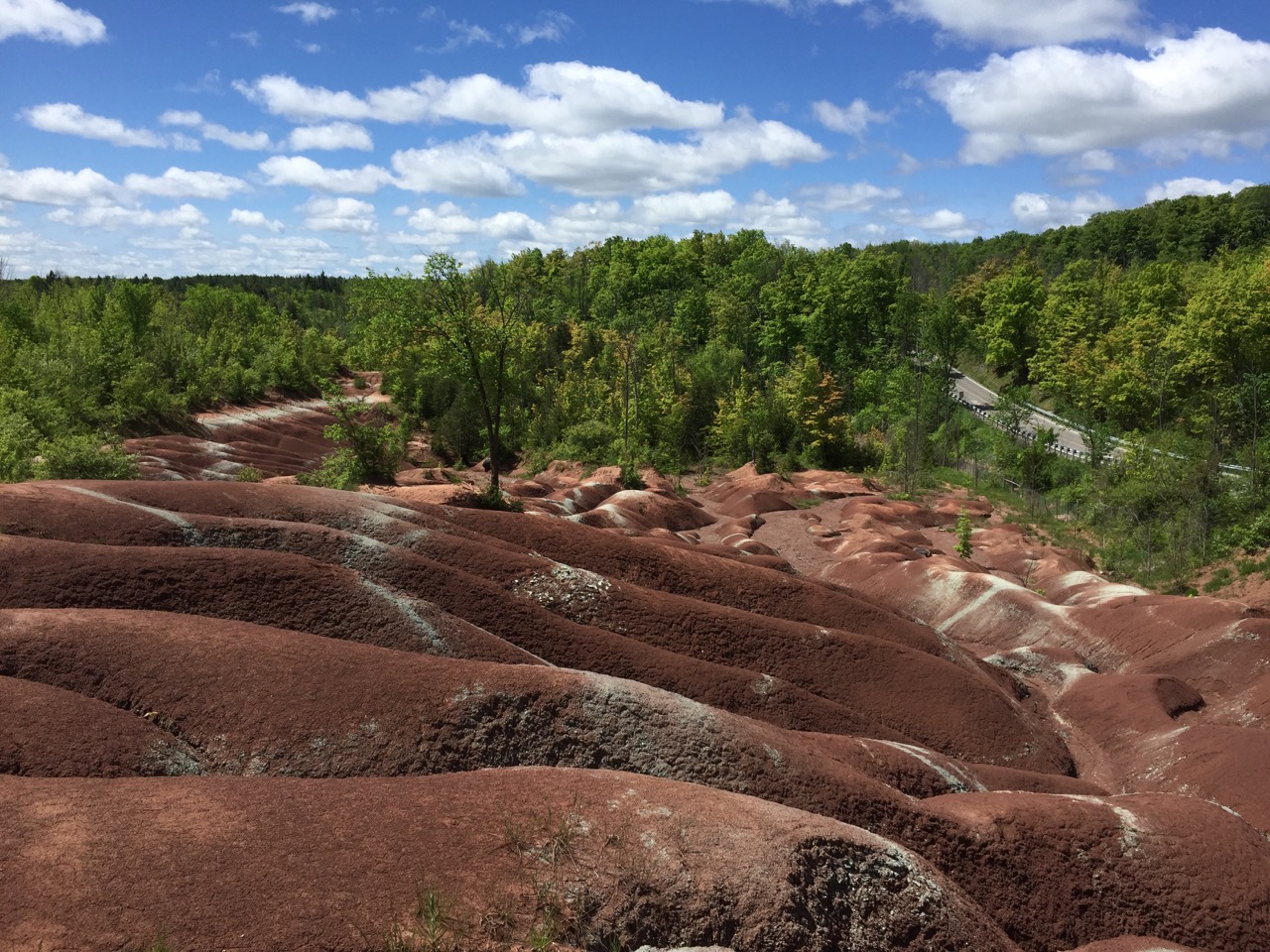 One of the things I’ve been meaning to see since moving here were the Cheltenham Badlands, a geographic formation with blood-red earth, caused by rich iron deposits, streaked with grey lines of silt and shale.