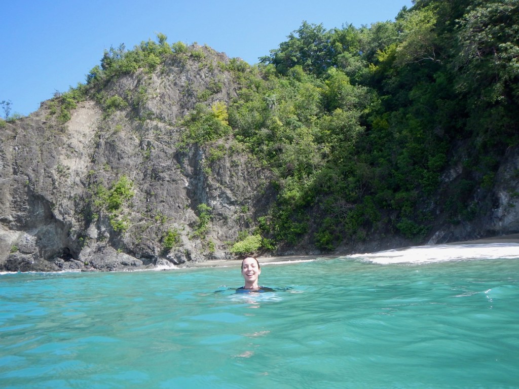 Blair took us from Mt. Irvine Beach to the remote Cotton Bay, which has no road access, and is only accessible by boat. After about a 30-minute ride through the wild waves, we reached Cotton Bay, and had the entire place to ourselves. It’s a long, sandy black sand beach, with great snorkelling and swimming. We also found many leatherback turtle eggs which had recently hatched.