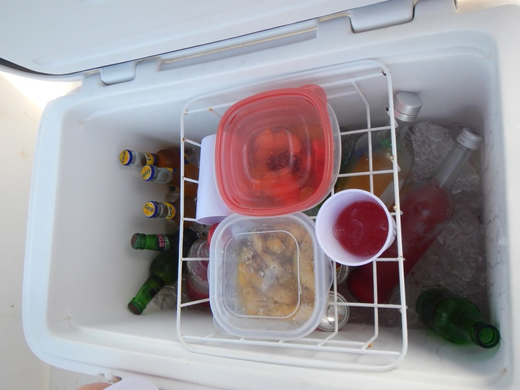 The next stop was No Man’s Land, where we put down anchor in the bay and Blair prepared lunch for us. He grilled us barracuda that he had caught and seasoned, along with chicken skewers, and yummy treats like fresh pineapple chow, and buljol and Crix. In a bid to be more eco friendly and avoid single use plastic, he also had fresh juices in recycled rum bottles, and delicious watermelon rum punch. It was heaven!