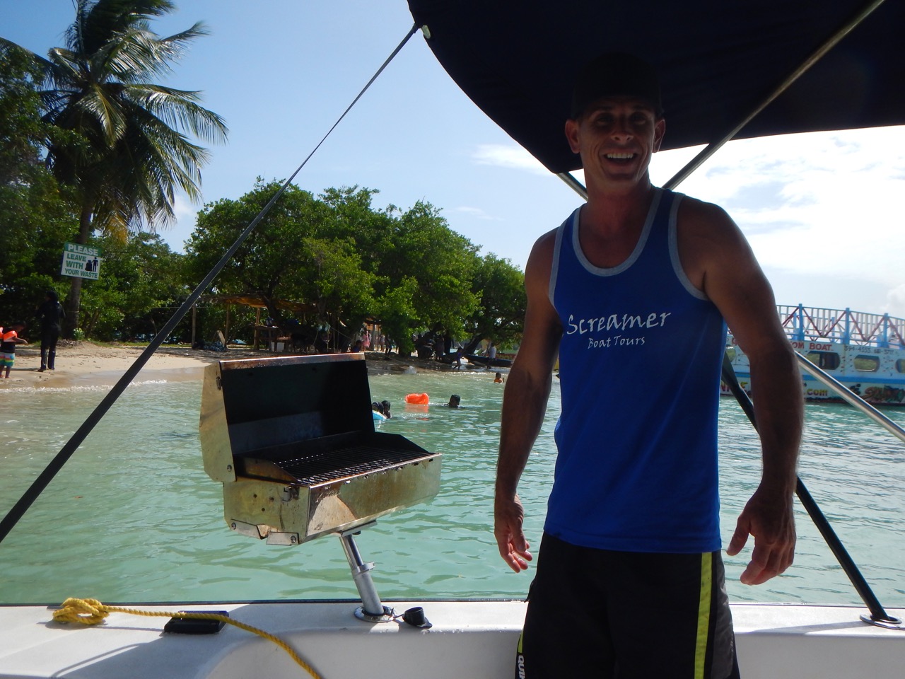 Blair Gomez of Screamer Boat Tours has got to be the happiest man in Tobago. After growing up in Trinidad (and, coincidentally, he was in my class in primary school, decades ago), he moved to Tobago, which is Trinidad’s little sister, to live a quieter life. After a few years of running a landscaping company, in 2019 he took up a new challenge — boat tours, on his lovely boat, Screamers.