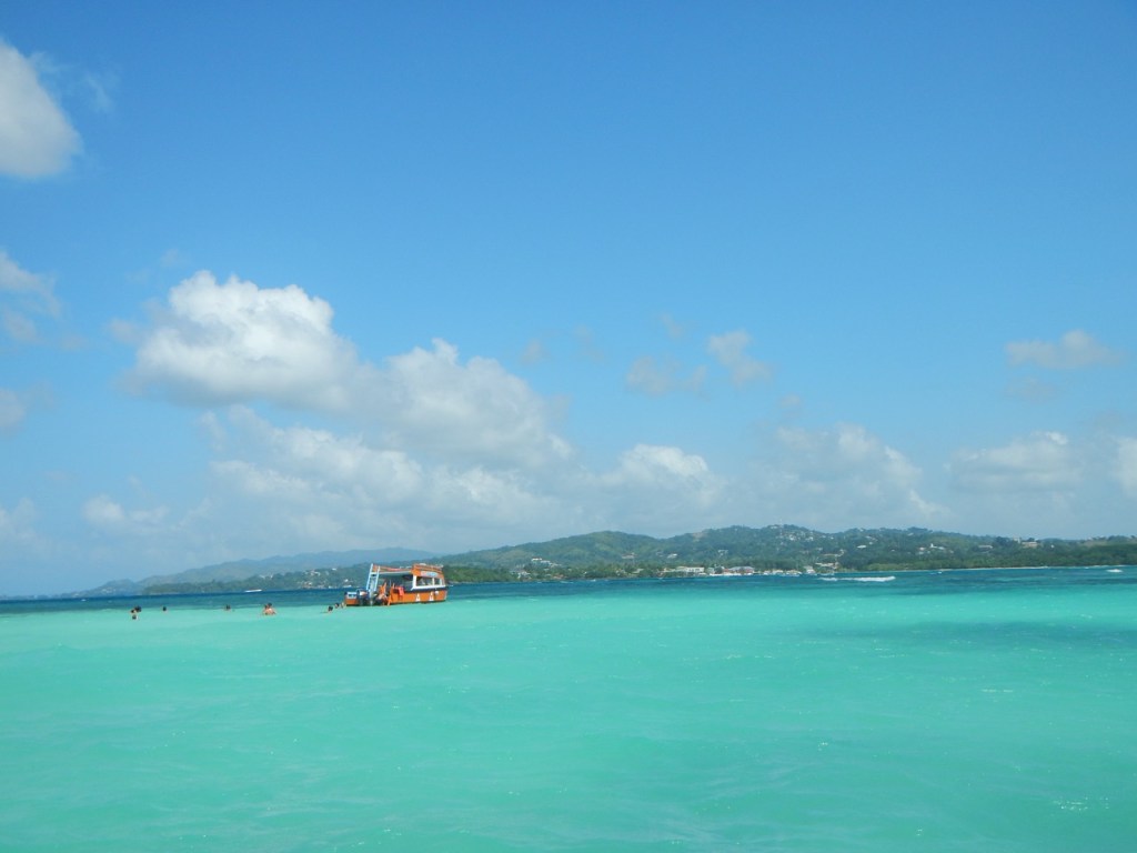After a while in Cotton Bay, some other boats showed up — didn’t they get the memo that this was OUR private paradise?? how rude!! — so we took a ride back towards a very popular tourist spot, the Nylon Pool. This shallow patch on the Buccoo Reef has perfect clear warm waters and is very shallow.