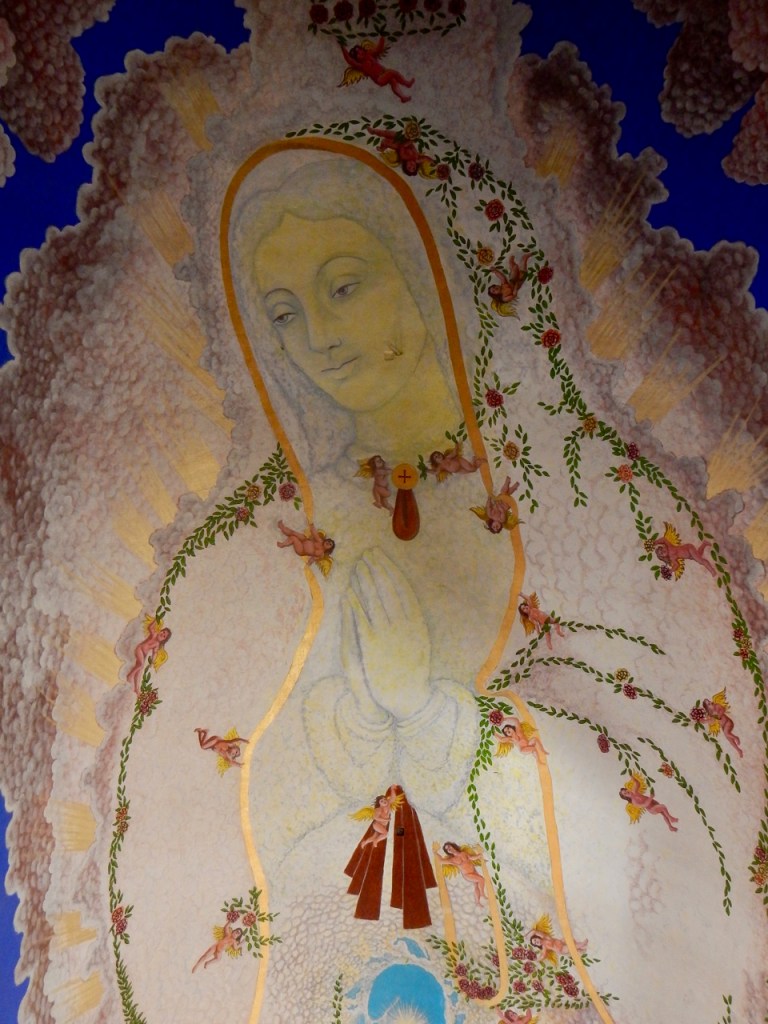 The church, the Iglesia de Crucecita, is famous for the massive mural on its ceiling of the Virgin of Guadelupe, the largest in the world! It is apparently more than 20 metres long. As you enter the Virgin appears to be ‘upside down’, so you have to walk down the church aisle to really get a closer look at the mural.