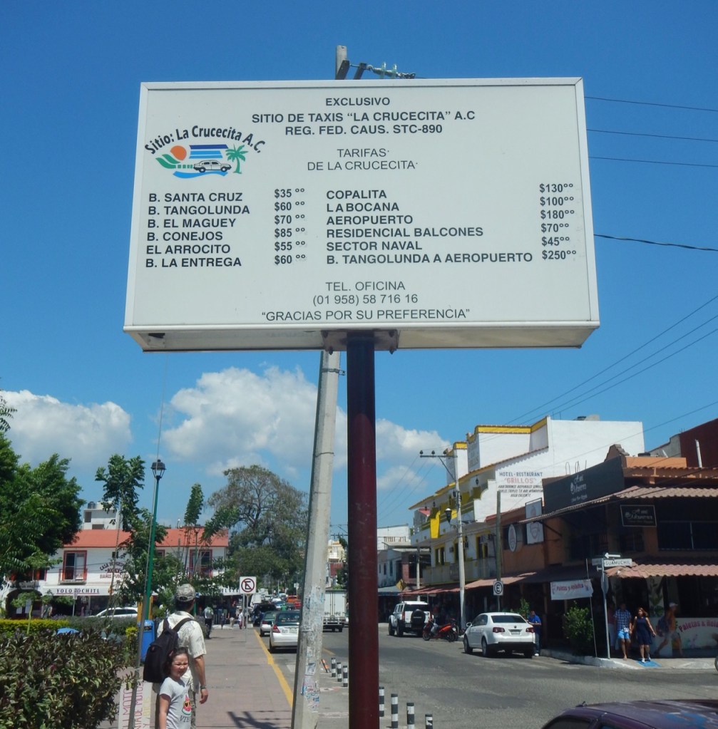 Getting around in Huatulco is very easy, with a surprisingly well organized taxi system and set prices, so you never have to worry about getting ripped off or negotiating with taxi drivers. The signs with the prices were everywhere, so you knew exactly how much the ride would cost and how many pesos you needed. You can take taxis everywhere and you can always find a taxi stand nearby to get back home. There was pretty much no traffic, and it only cost us about $2 to get to La Crucecita in a scenic 15-minute drive. Impressive!