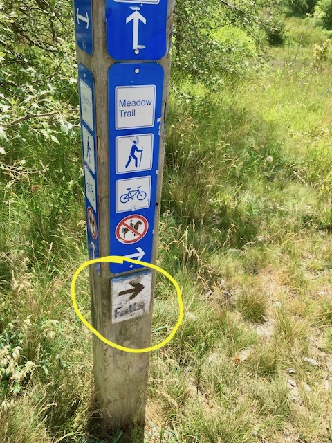 There are signs all along the way, so it’s easy enough to follow the Meadow Trail once you’re on it. But as an added bonus, someone who was equally disappointed in the signage had very helpfully added on the most important piece of info – “which way is the falls”. So on the trail marker signs, look out for the small white add-on which simply states FALLS with an arrow. Keep following that little sign and you’ll find it.