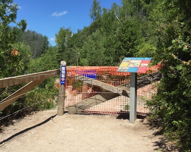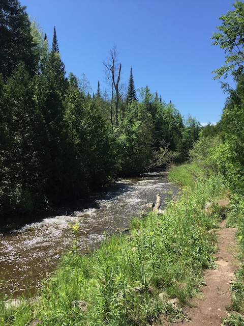 And when the trail reaches the bathroom at the fork, you can take the little footpath down to see the Credit River, which was very beautiful, and on a hot day probably a great place to cool down. From here you could walk along the Bruce Trail – the small footpath you see if the picture below. This also goes up to the falls.