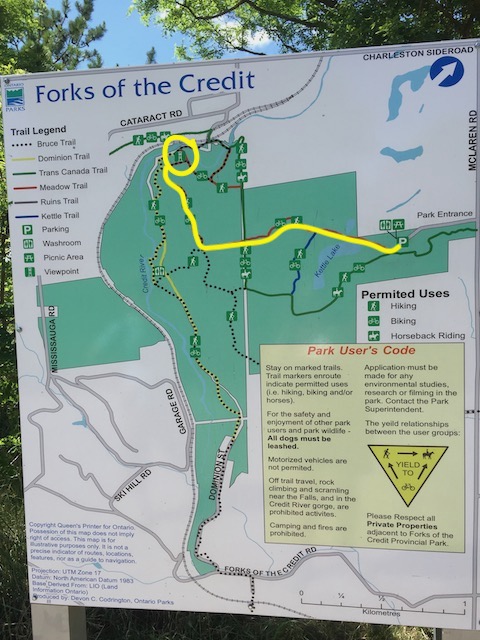 From the parking lot, there is of course the obligatory sign with maps of the different trails. A lot of trails run through the park including the Bruce Trail and the Trans Canada Trail.