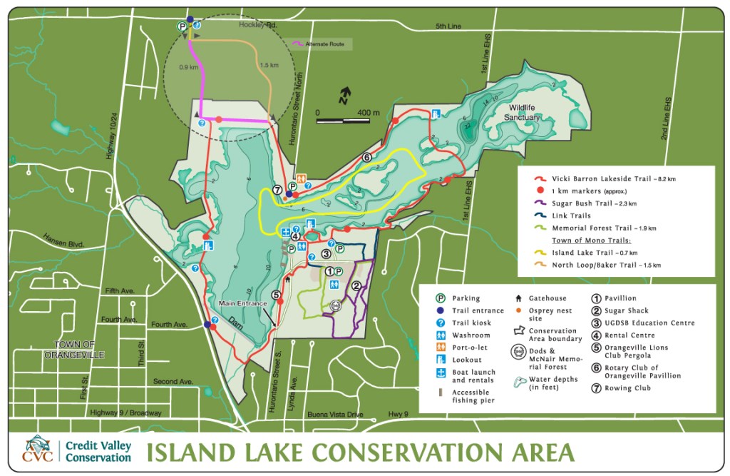 If you’re planning to go paddling at Island Lake, I’d recommend this route, which I’ve added in yellow onto the map below. You can rent by the hour, but one hour isn’t quite enough so I’d recommend two hours.