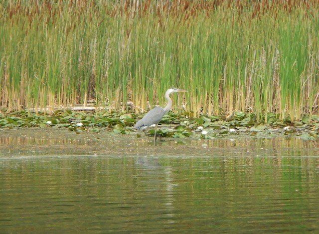 After going under the bridges we went as far north as we could go, admiring some gorgeous waterfront properties on the way. Heading back down the lake, we went around some other small islands, watching the geese, ducks and loons. This area of the lake is also known for herons and we were lucky to see a large grey one quite close, busy hunting small fish.