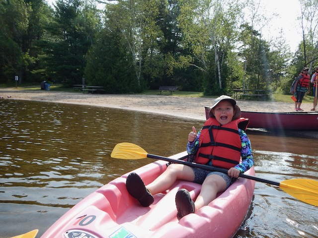 Anyway, we enjoyed the beach at Oastler Lake every day, and had a fantastic time renting kayaks and going out for a paddle around the entire lake. One tip about the rentals – the canoes are all gone by 9 am. People apparently line up at 8am, when the rental office opens, and book them all. There are, however, tons of kayaks. We took out a tandem kayak and a kids kayak and had a ball.